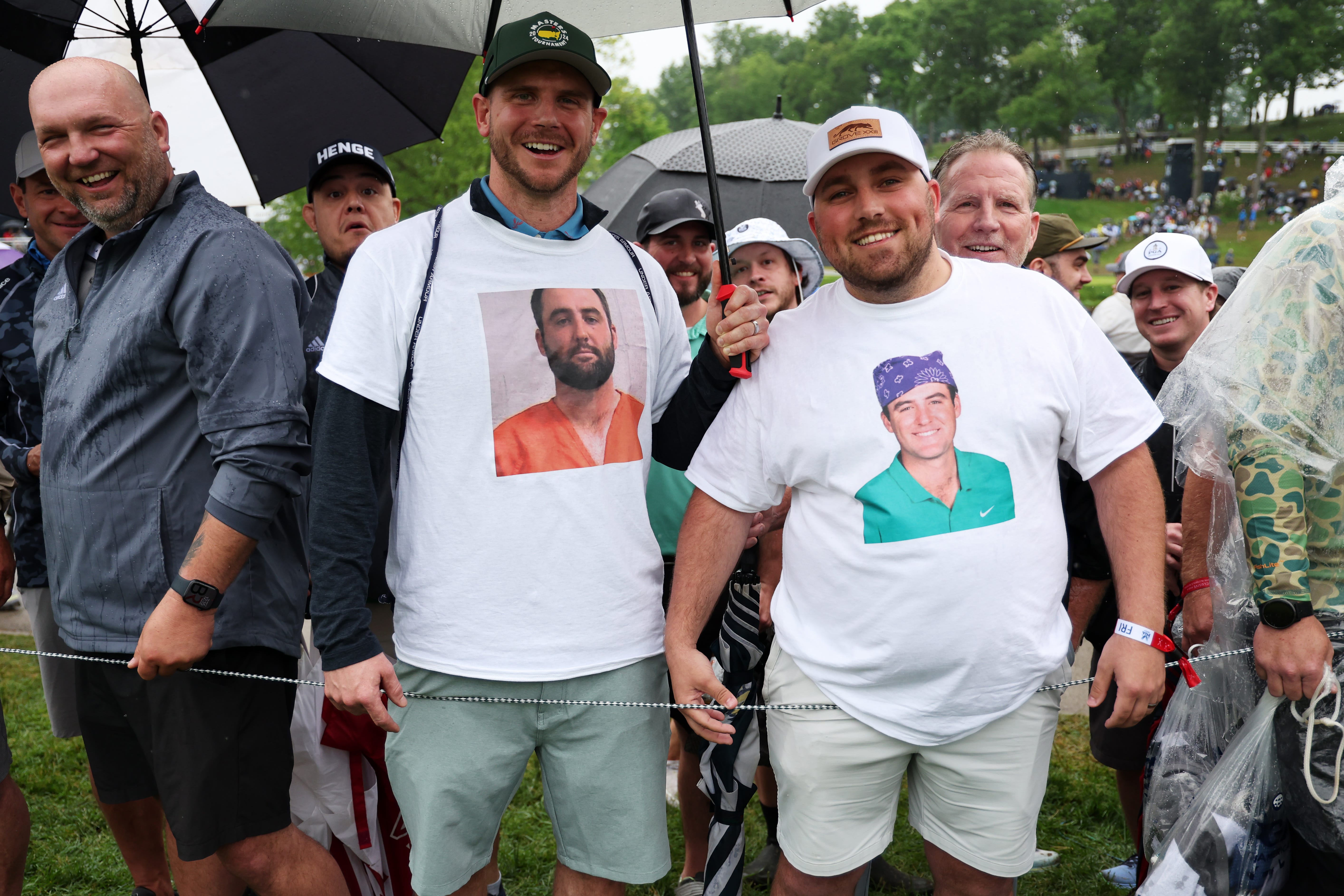 Fans wear shirts with Scottie Scheffler of the United States on them are seen on the course during the second round of the 2024 PGA Championship at Valhalla Golf Club on May 17, 2024 in Louisville, Kentucky. (Photo by Patrick Smith/Getty Images)
