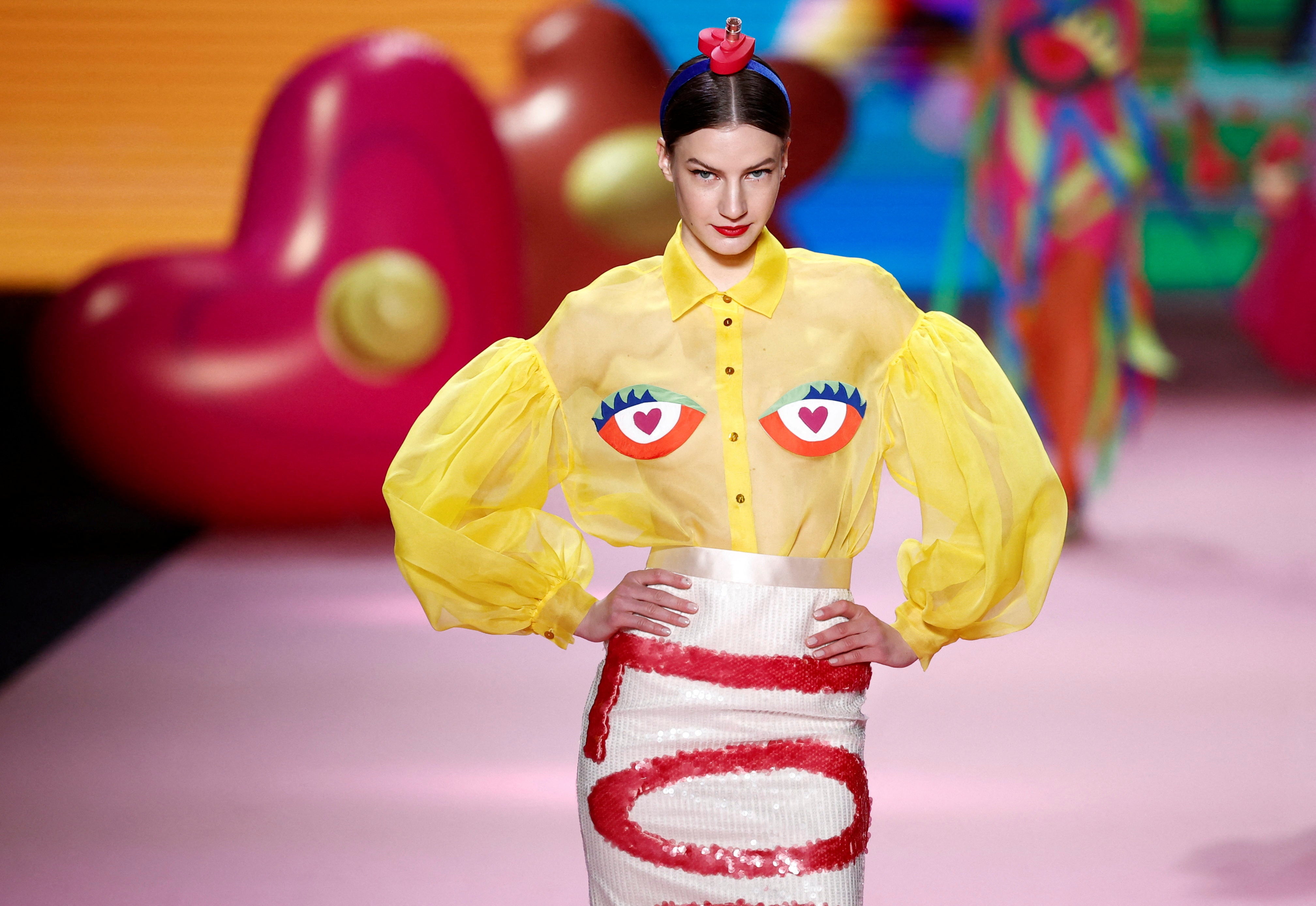 A model displays an outfit by Agatha Ruiz de la Prada during the Mercedes Benz Fashion Week in Madrid, Spain on February 16, 2023. (Photo by Juan Medina/Reuters)