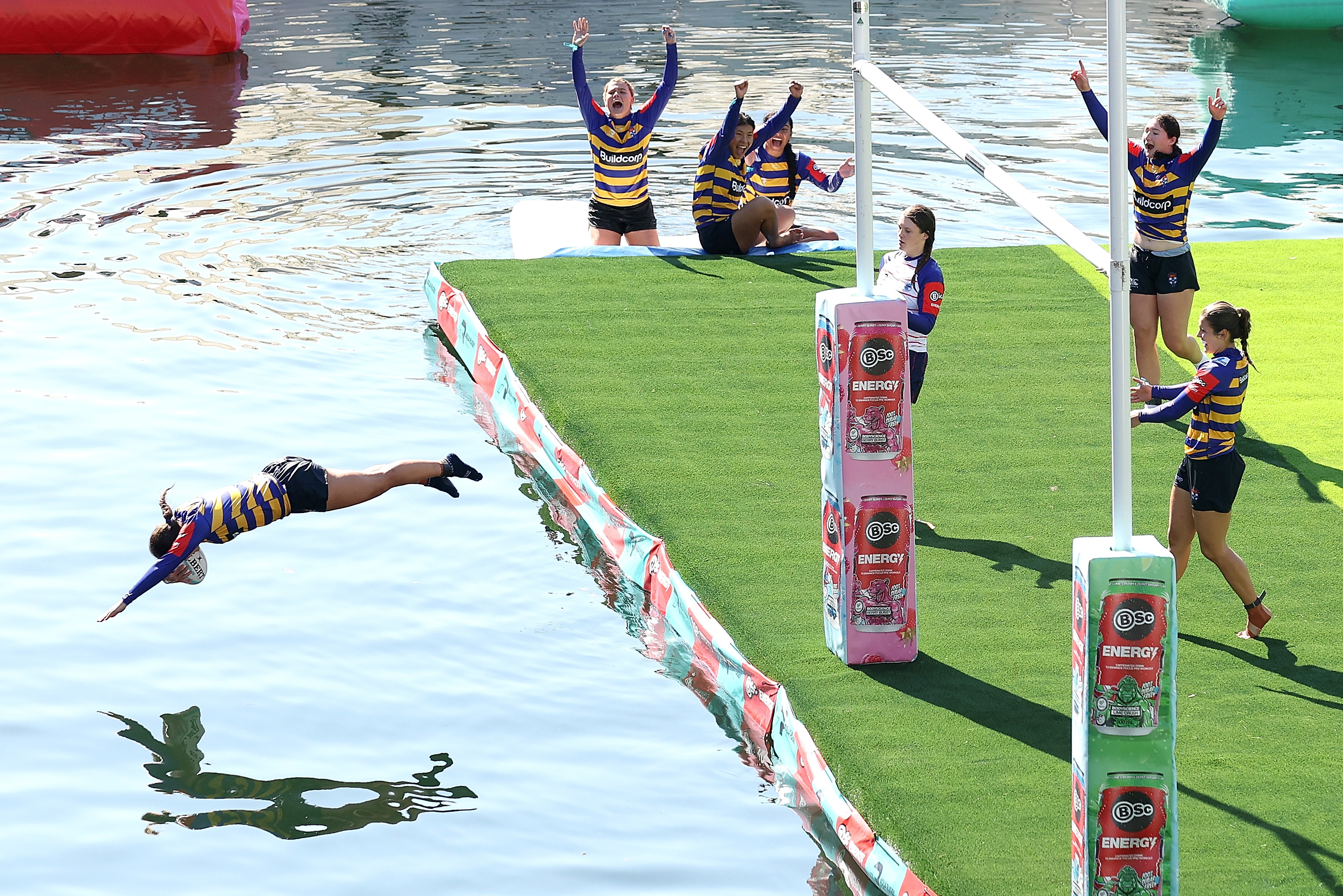 Sydney University score a try against the Warringah Rats in the women's final during the Aqua Rugby Festival at Darling Harbour on April 13, 2024 in Sydney, Australia. (Photo by Mark Kolbe/Getty Images)