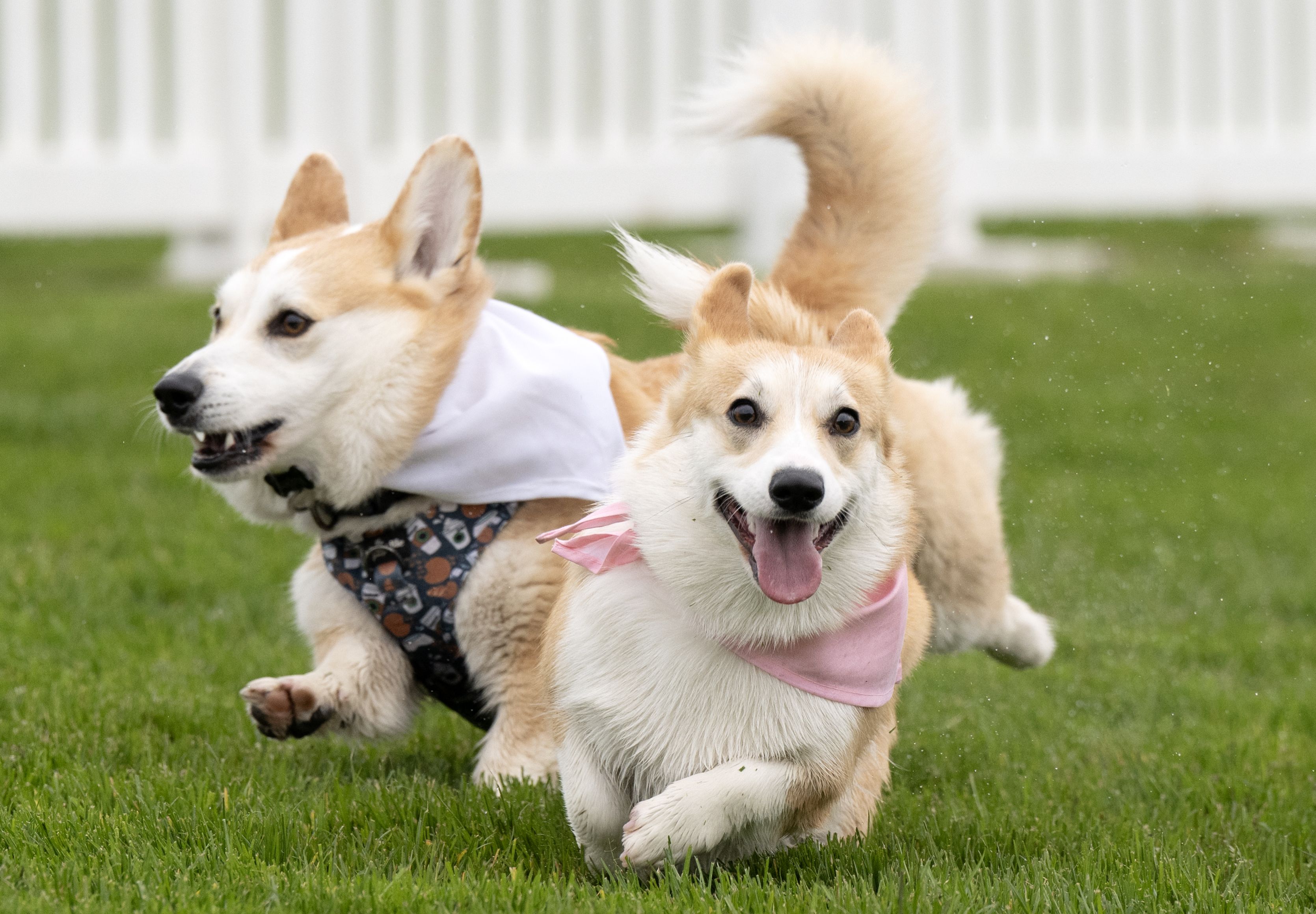 Corgis race to the finish line during the Corgi Derby at Musselburgh Racecourse, East Lothian, Scotland in the last decade of April 2024. (Photo by Lesley Martin/The Times)