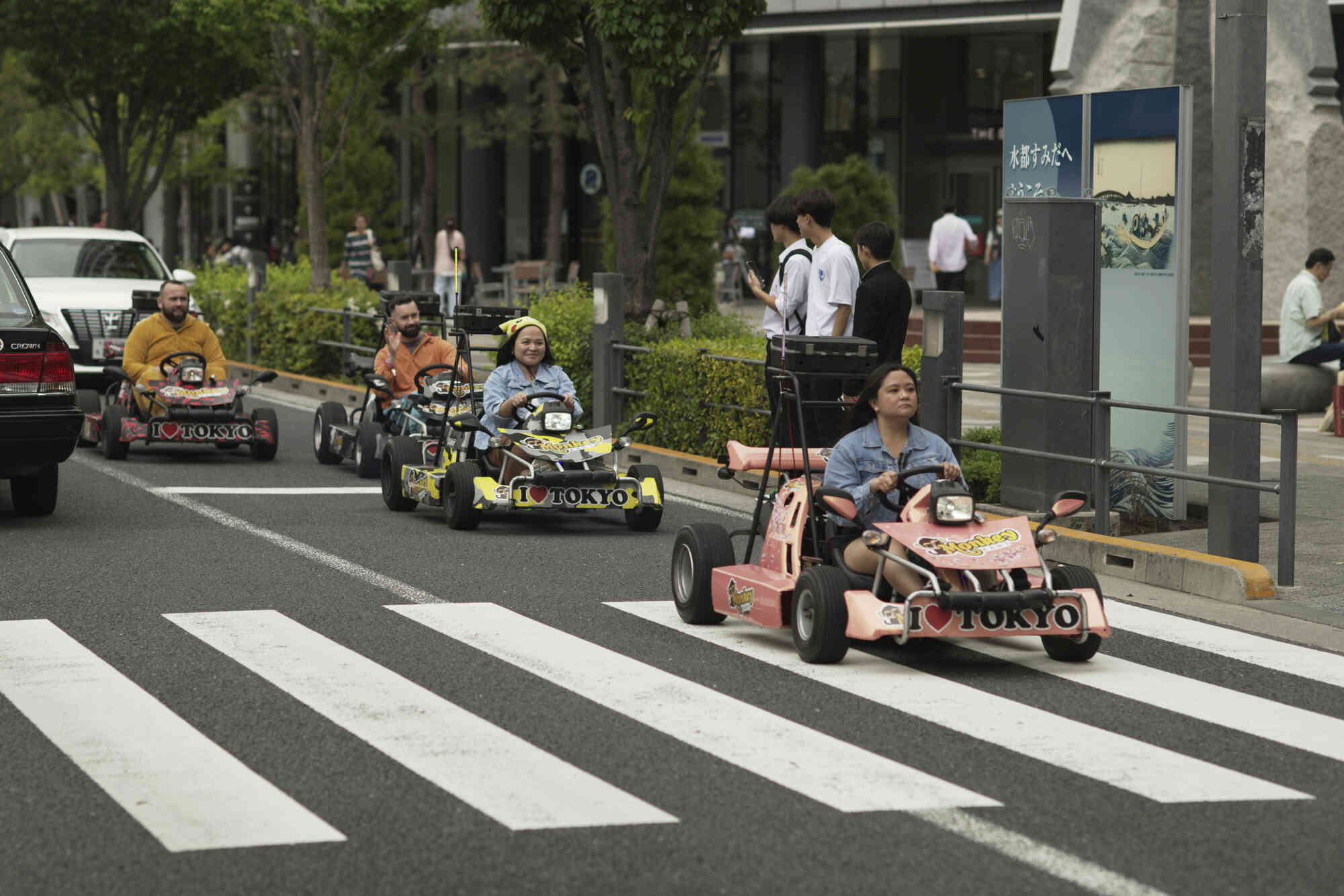 Tourists ride go-carts in a tour during a holiday period called, “Golden Week”, in Tokyo, Tuesday, April 30, 2024. Golden Week is a popular time for travels, festivals and other entertaining events throughout Japan. (Photo by Hiro Komae/AP Photo)