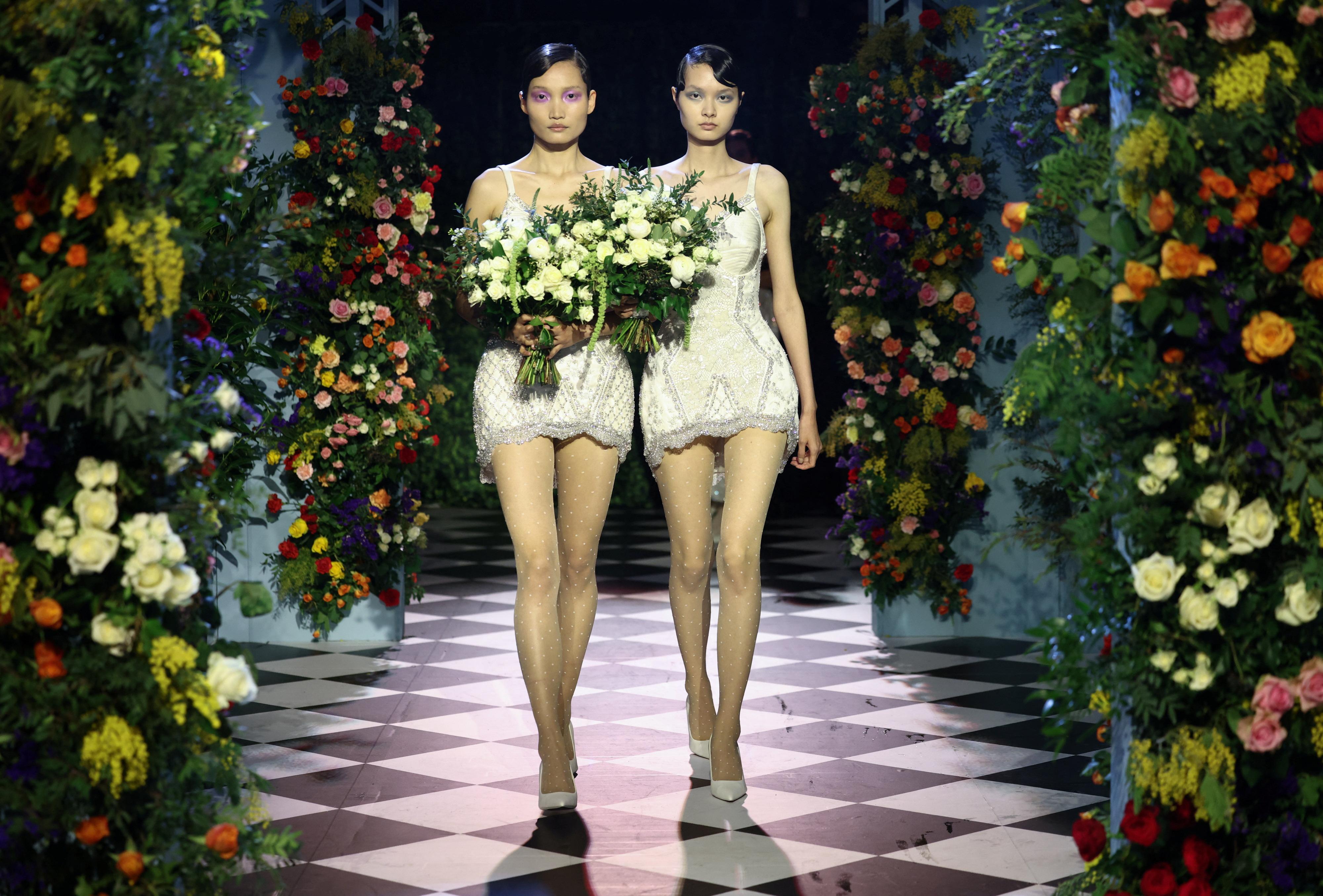 Models present creations during the Richard Quinn catwalk show during London Fashion Week in London, Britain on February 18, 2023. (Photo by Henry Nicholls/Reuters)