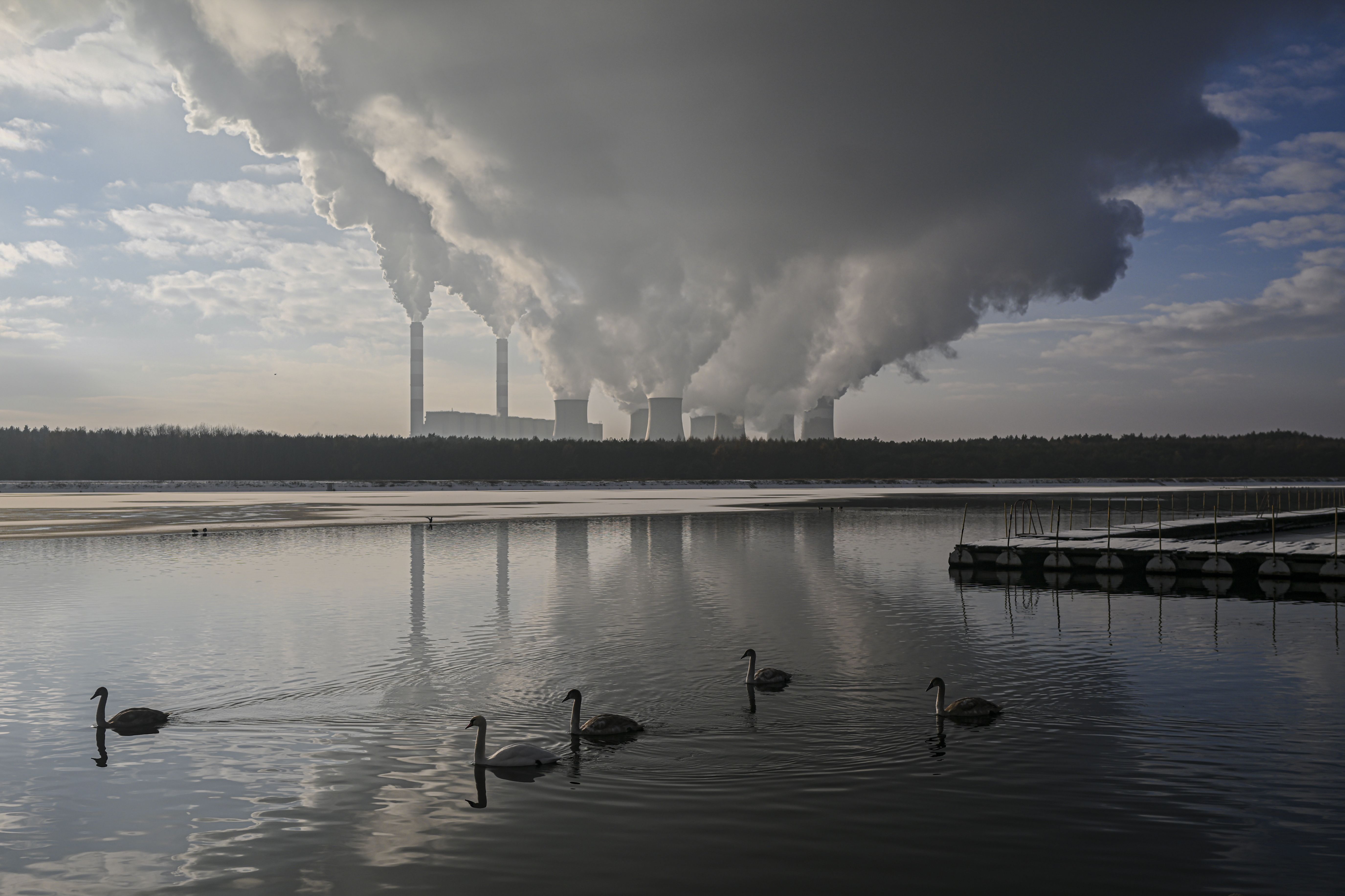 A view of lignite coal-powered Belchatow Power station as smoke and steam rises from the cooling towers in Rogowiec, Poland on November 30, 2023. The 5,298MW Belchatow power plant is the biggest coal-fired power plant in Europe. (Photo by Omar Marques/Anadolu via Getty Images)
