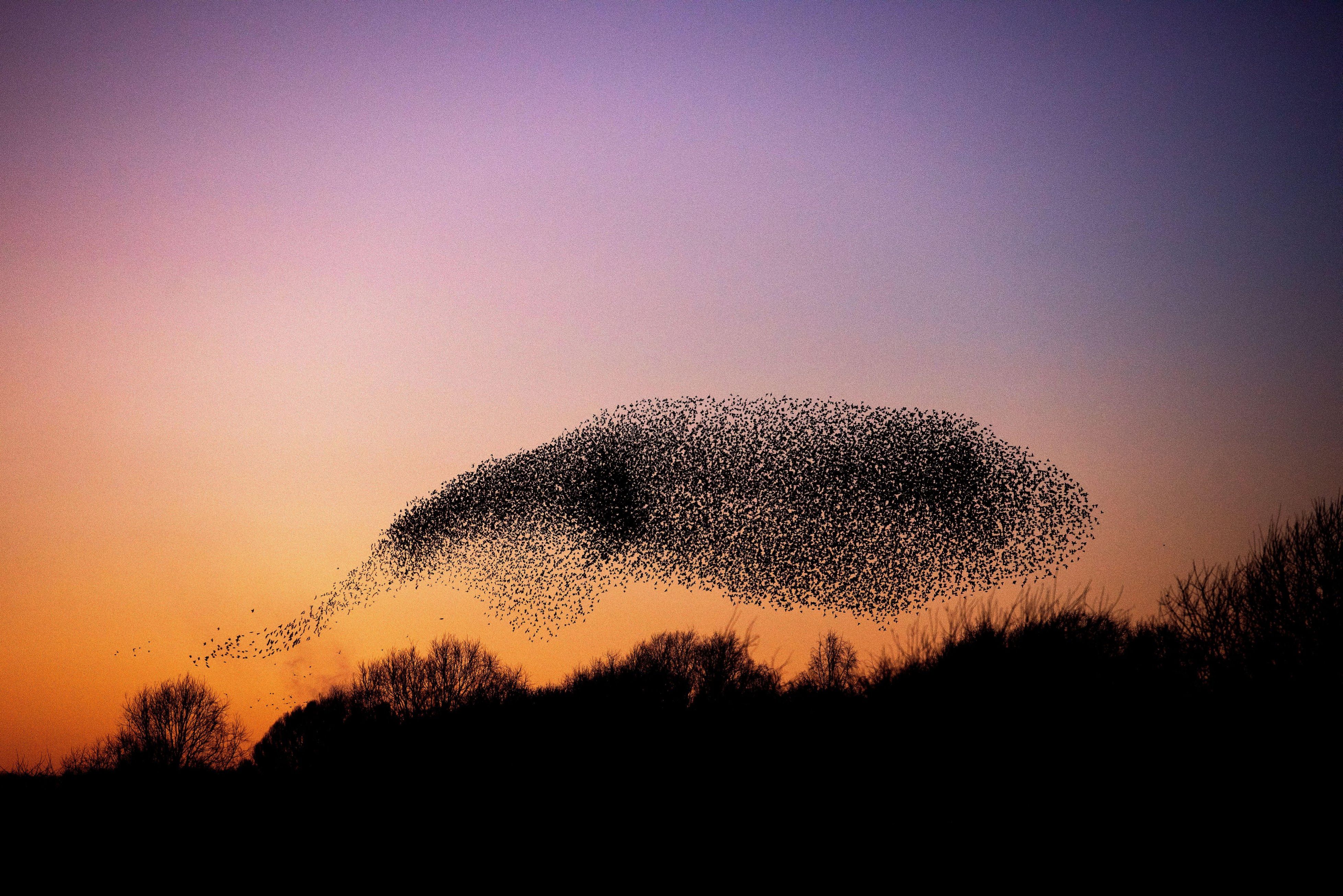 A general view of the starling murmuration over the Skylarks Nature Reserve at Holme Pierrepont, Nottingham, UK on January 30, 2024. (Photo by Neil Squires/Alamy Live News)