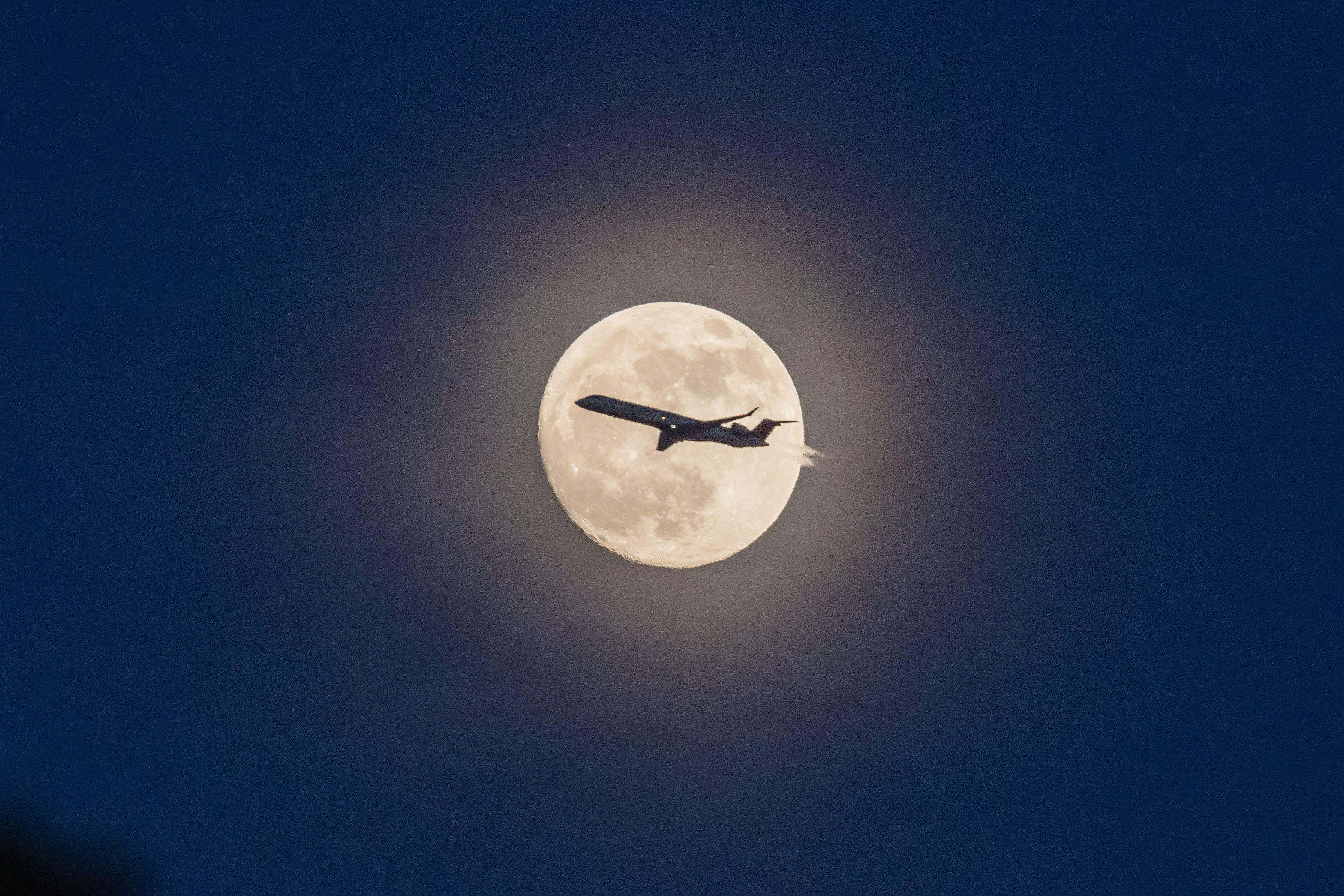 Plane is seen close to the full moon is seen in New York in the United States on the night of this Tuesday, May 21, 2024. (Photo by William Volcov/ZUMA Press Wire/Alamy Live News)