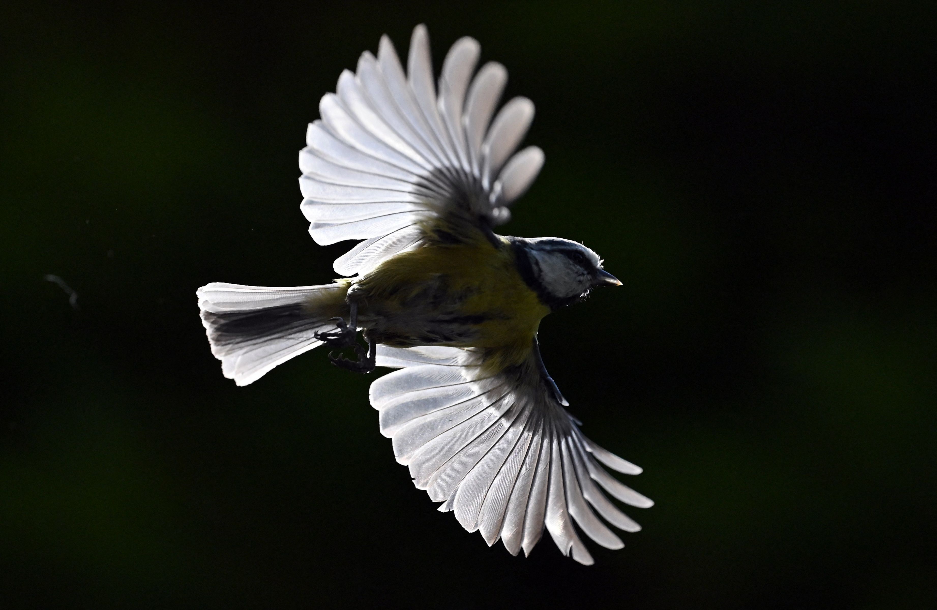 A Blue Tit leaves its nest in Portslade, southern England on May 20, 2024. (Photo by Glyn Kirk/AFP Photo)