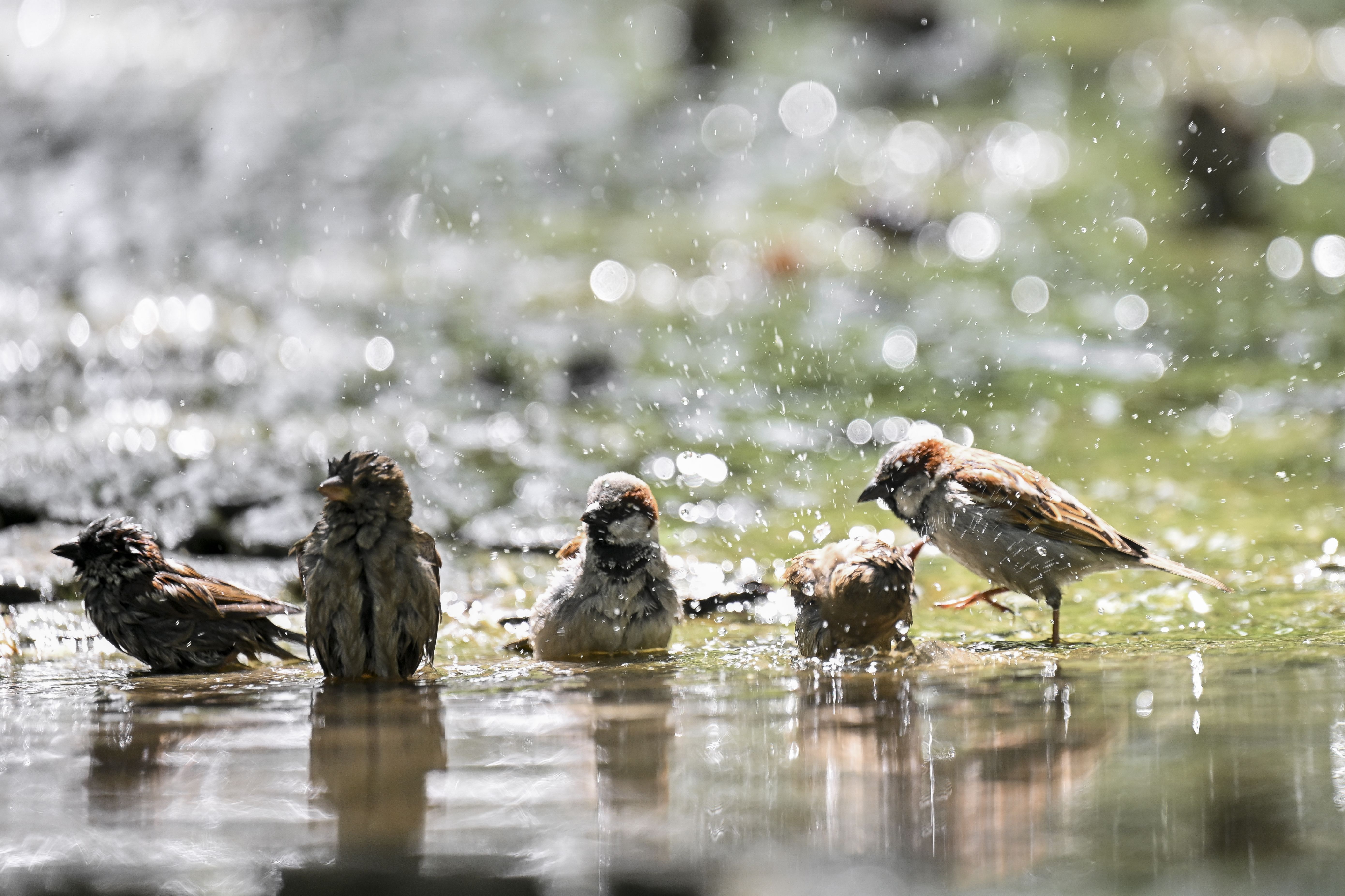 Sparrows are seen spending time in the water as animals living around Segmenler Park enjoy the spring and sunny weather in Ankara, Turkiye on May 17, 2024. (Photo by Mustafa Hatipoglu/Anadolu via Getty Images)