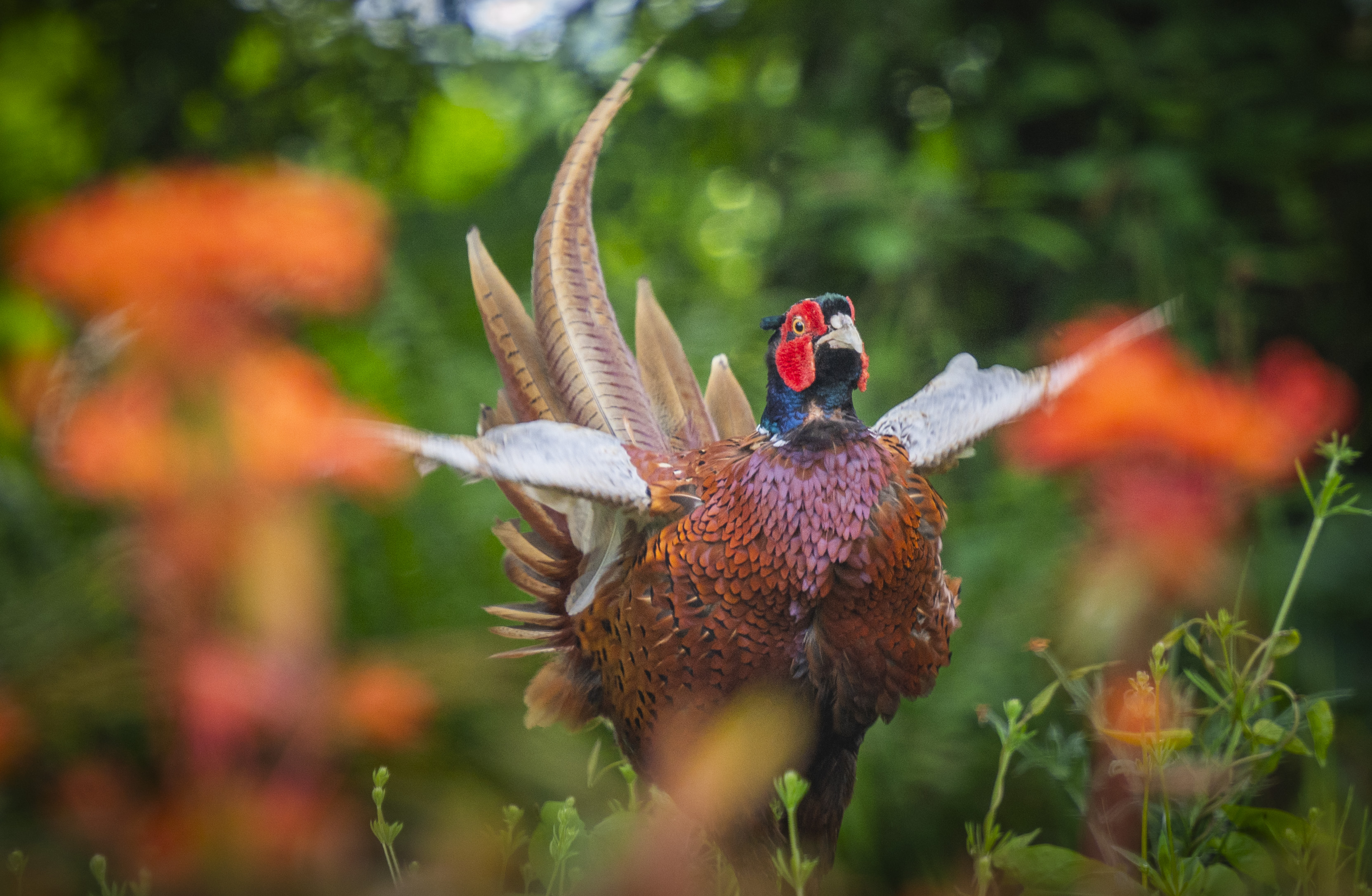 A male pheasant makes his presence known by calling out to other locals while perched in a cottage garden in Birgham, Scottish Borders on May 20, 2024. (Photo by Phil Wilkinson/The Times)