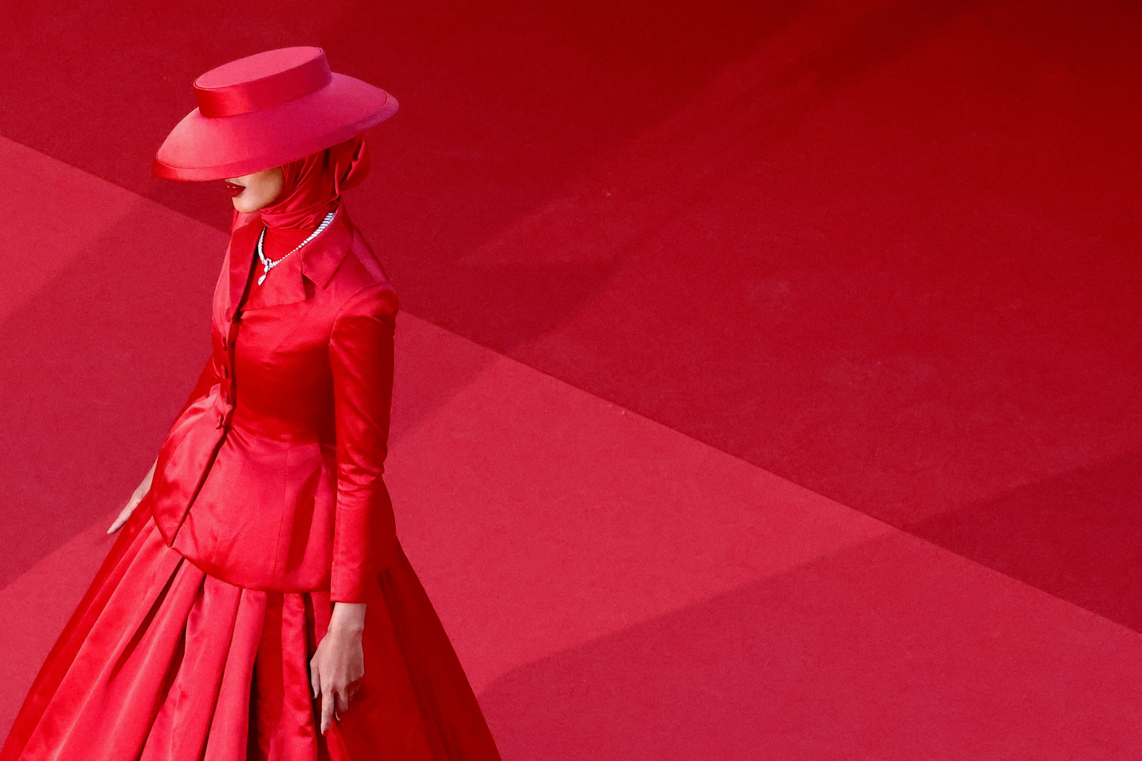 Somalian-Norwegian model Rawdah Mohamed arrives for the screening of the film “Marcello Mio” at the 77th edition of the Cannes Film Festival in Cannes, southern France, on May 21, 2024. (Photo by Yara Nardi/Reuters)