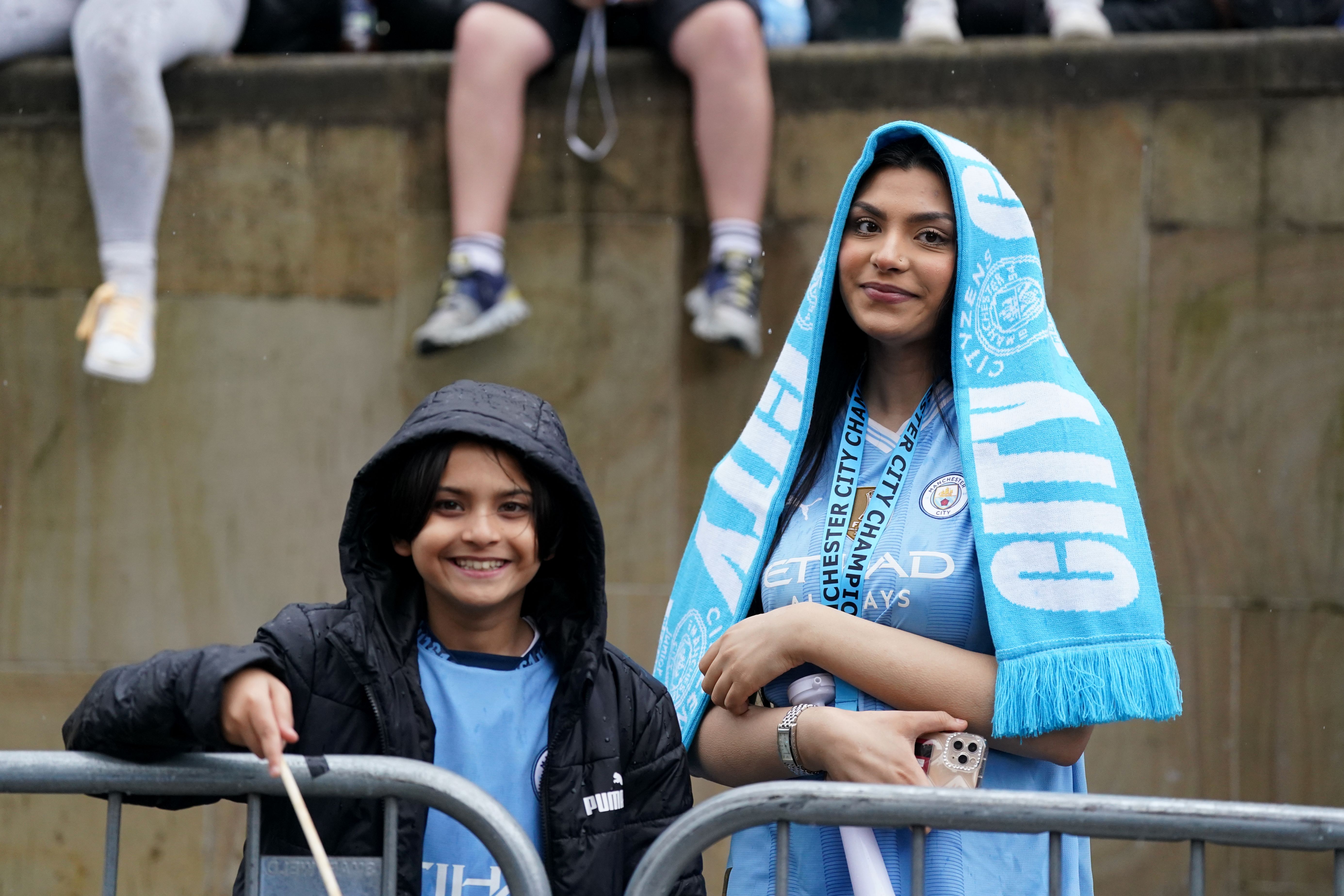 A general view of fans before the trophy parade in Manchester on Sunday, May 26, 2024, after they won their fourth successive Premier League title and their sixth in seven years. (Photo by Bradley Collyer/PA Images via Getty Images)