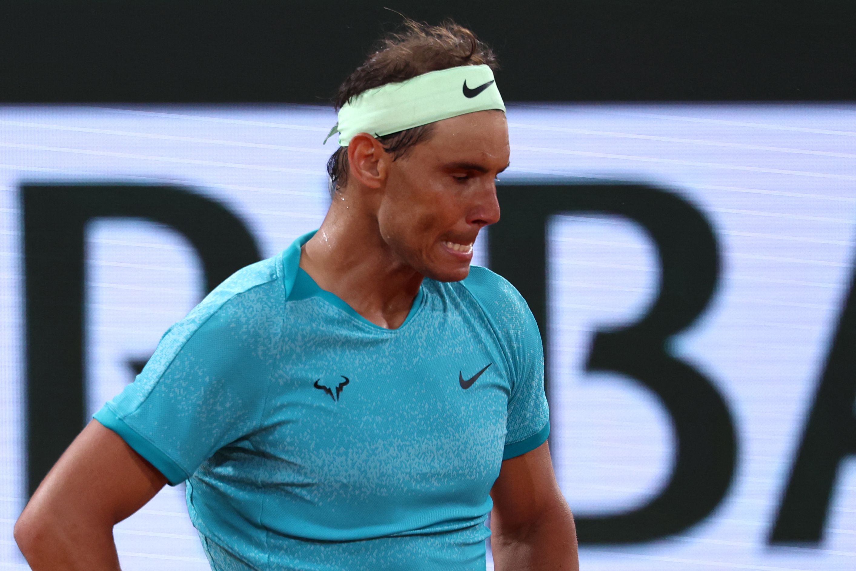 Spain's Rafael Nadal reacts during his men's singles match against Germany's Alexander Zverev on Court Philippe-Chatrier on day two of the French Open tennis tournament at the Roland Garros Complex in Paris on May 27, 2024. (Photo by Emmanuel Dunand/AFP Photo)