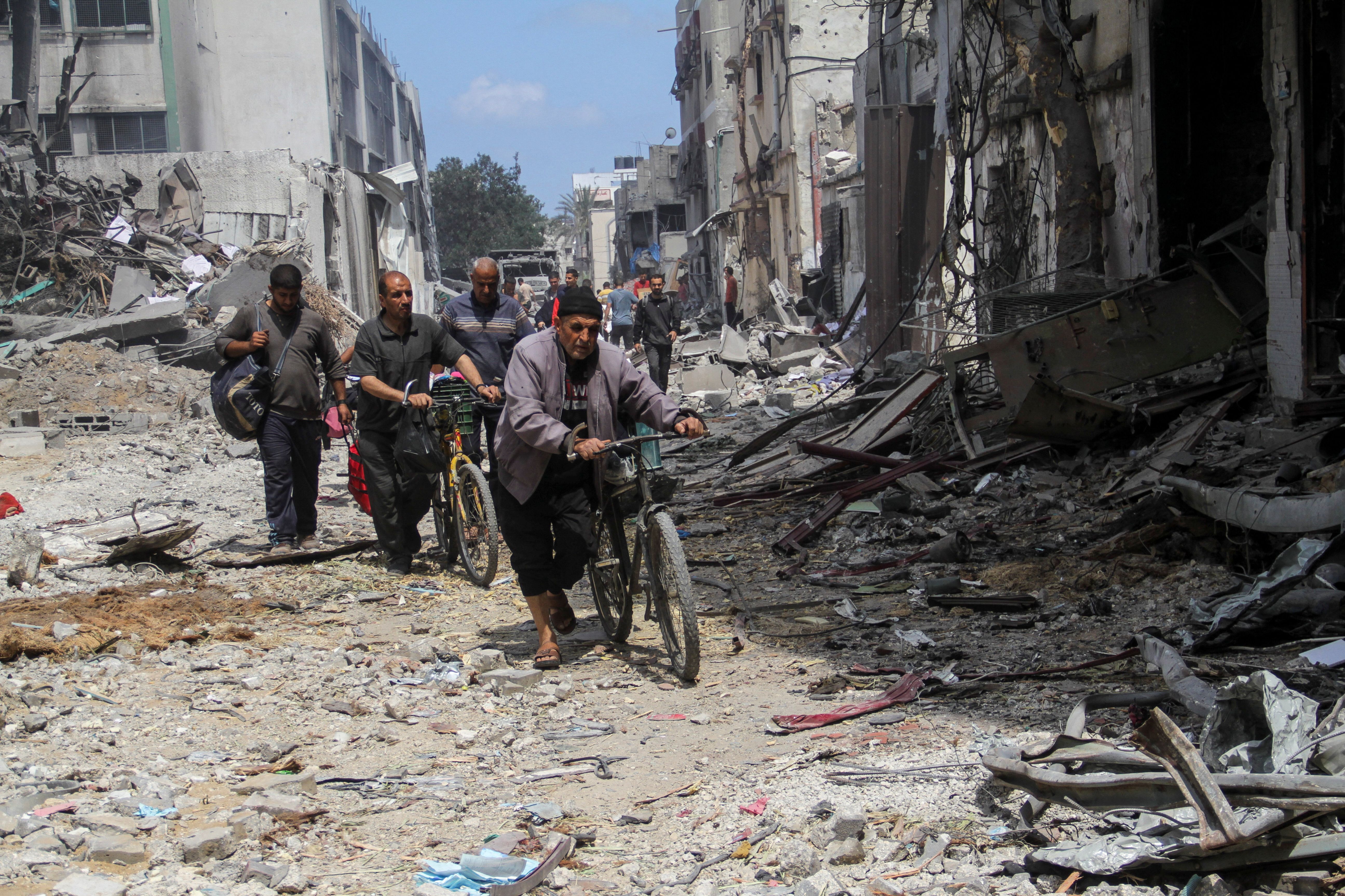 Palestinians return to their homes at Zeitoun neighborhood after Israeli forces withdrew from the area following a raid, in Gaza City, on May 15, 2024. (Photo by Mahmoud Issa/Reuters)