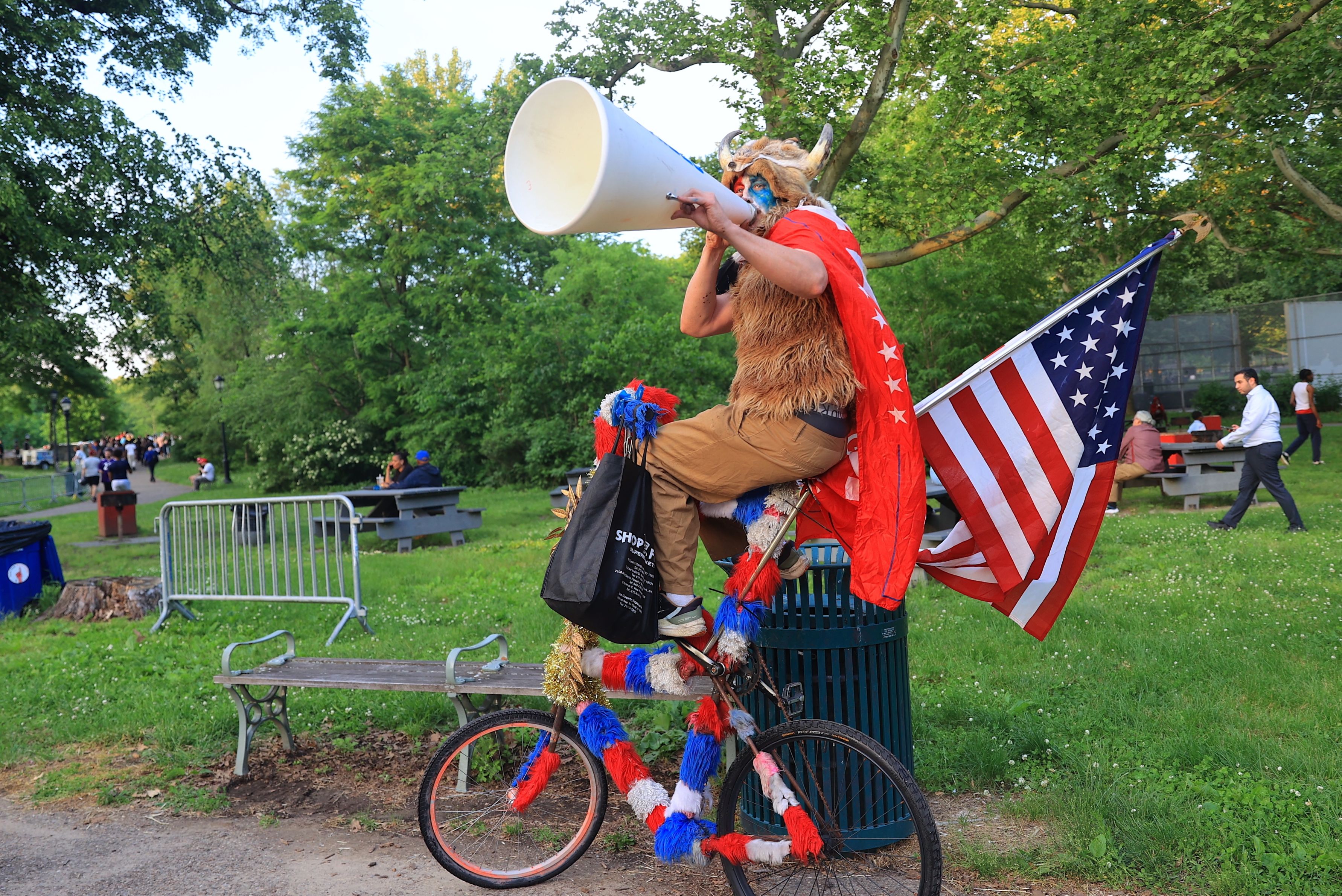 Supporters of Donald Trump gather during a rally in Bronx borough of New York, United States on May 23, 2024. A group of pro-Palestinian staged a protest during the rally at the entrance as NYPD police took measures. (Photo by Selcuk Acar/Anadolu via Getty Images)
