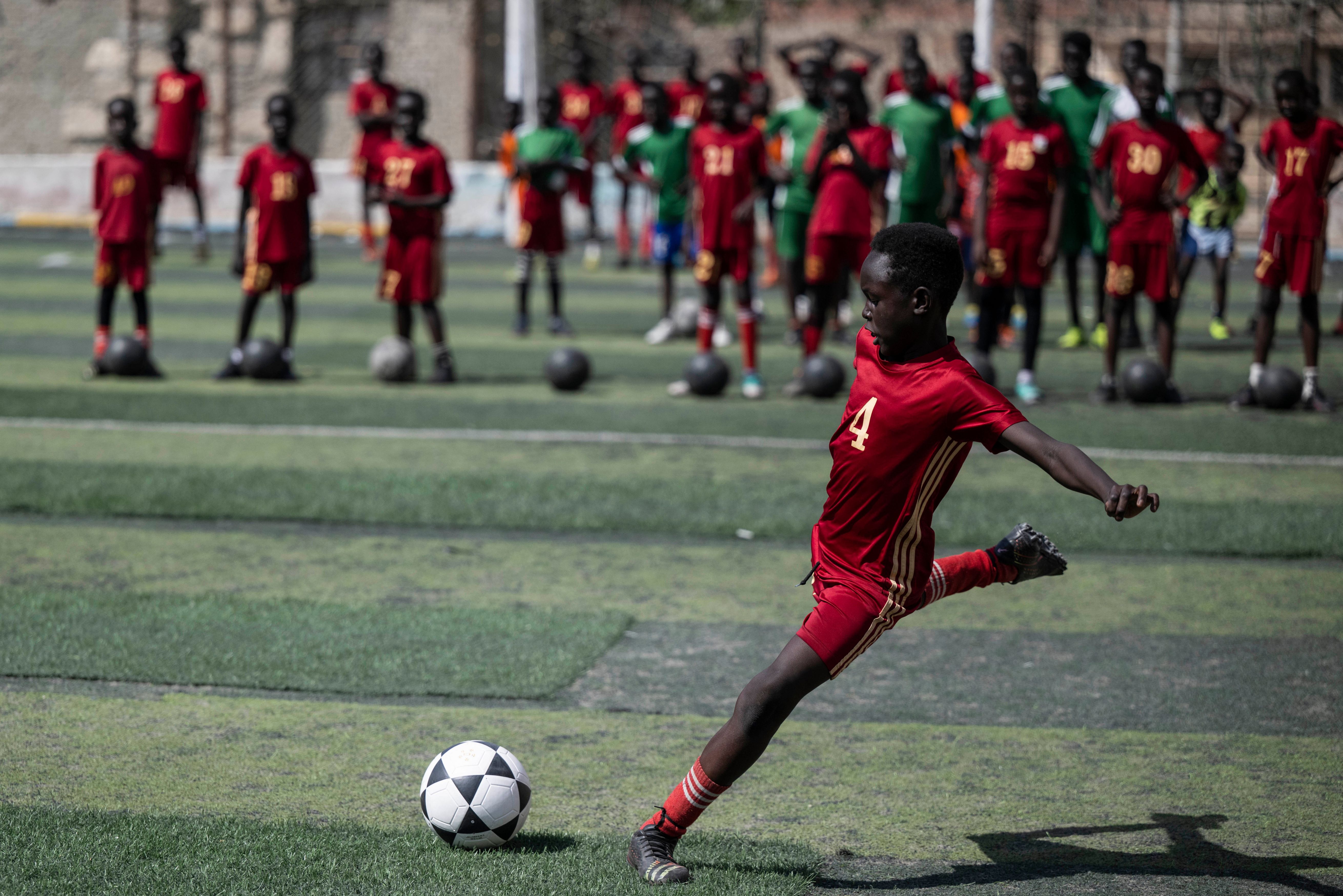 Children attend a soccer training session at “Mostaqbal” (Future) soccer academy for refugees, in Cairo, Egypt, 03 May 2024. According to the 35-year-old South Sudanese coach Mario Tual Mingok Chowl, he arrived in Egypt as a refugee in 2017, and in 2020 established a soccer training academy for refugees in Egypt to discover distinguished talents, and to develop the children's skills, as well as to create a suitable sports environment for talented children. There are 84 players in the academy, from South Sudan, Nigeria and from Egypt as well, while the monthly fee for each one is 50 Egyptian pounds (about 1 US Dollar), according to Chowl, adding that they are facing problems of funding their activities. He expressed his dream is to build a distinguished generation that helps develop sport in the region. According to the UNHCR, Egypt hosts 575,000 registered refugees and asylum-seekers from 61 countries, including 61,000 from South Sudan. (Photo by Mohamed Hossam/EPA/EFE)