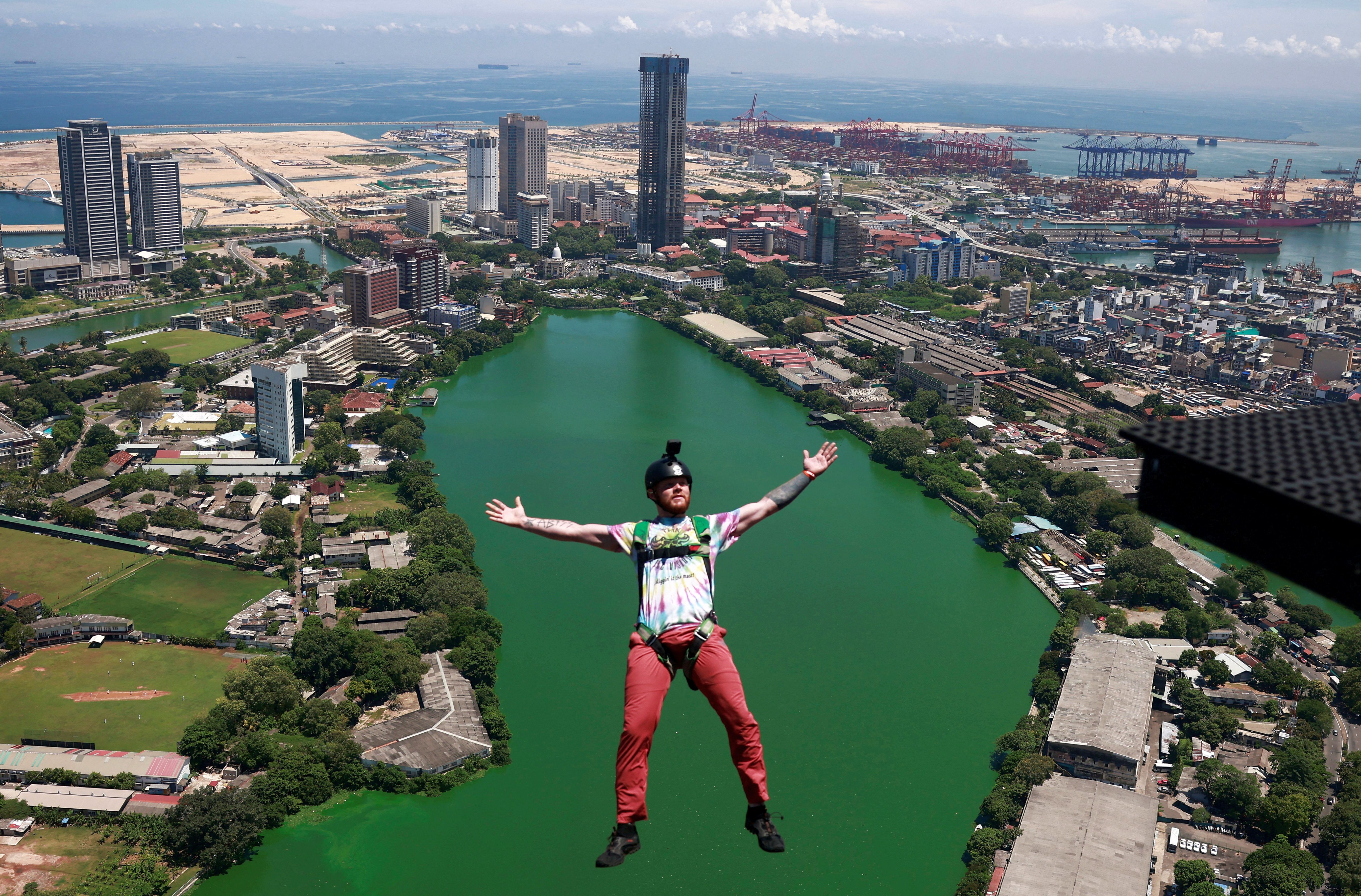 A base jumper leaps off the Lotus Tower, a 351.5 m tall tower in Colombo, Sri Lanka on May 13, 2024. (Photo by Dinuka Liyanawatte/Reuters)