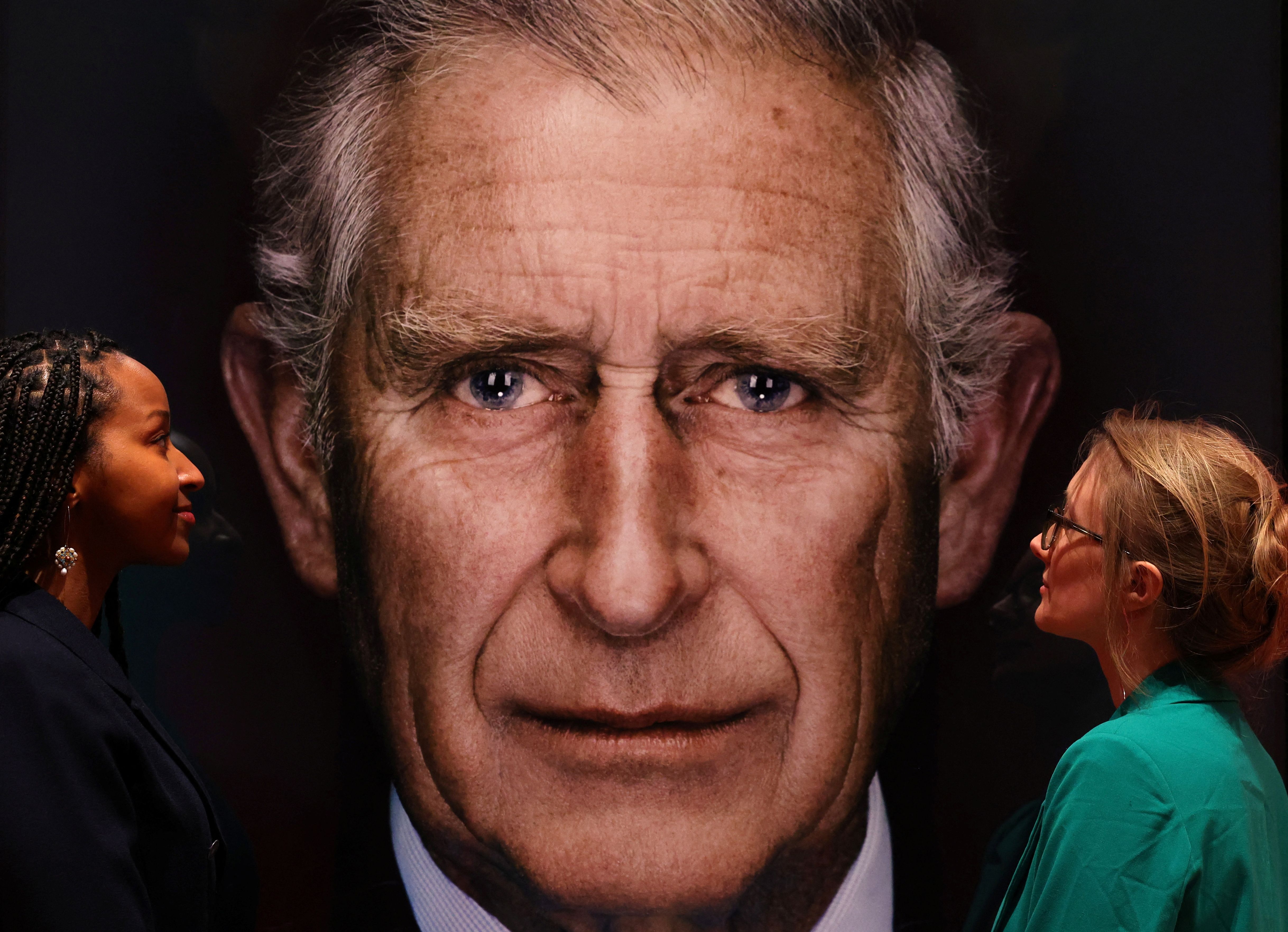 Employees from Royal Collection Trust, Ashleigh and Meredith pose as they view “King Charles III when the Prince of Wales” by Nadav Kander in 2013 which forms part of the new exhibition ‘Royal Portraits: A Century of Photography’ at The King’s Gallery, Buckingham Palace, in London, Britain, on May 16, 2024. (Photo by Toby Melville/Reuters)