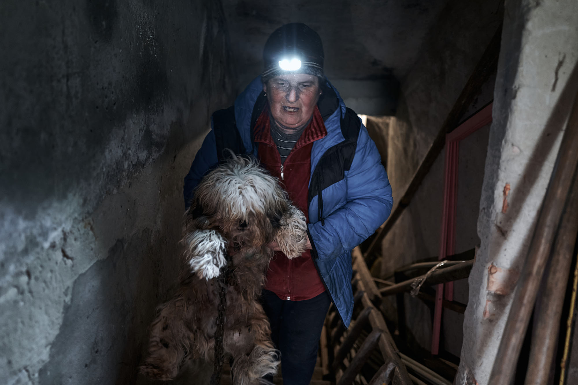 People carry out an evacuation of an animal shelter, which has more than 120 animals including dogs and cats and goats on May 13, 2024 in Rus'ki Tyshky, Kharkiv region, Ukraine. The owner of the shelter knows each animal by name, they are all well-groomed and each has its own story. Some lived with her simply in an apartment and some in the basement. They were forced to evacuate due to increased shelling by the Russians Ukraine's defense ministry announced recently that it has sent reinforcements to repel Russian attacks in border areas of the Kharkiv region, in the the country's northeast. (Photo by Kostiantyn Liberov/Libkos/Getty Images)