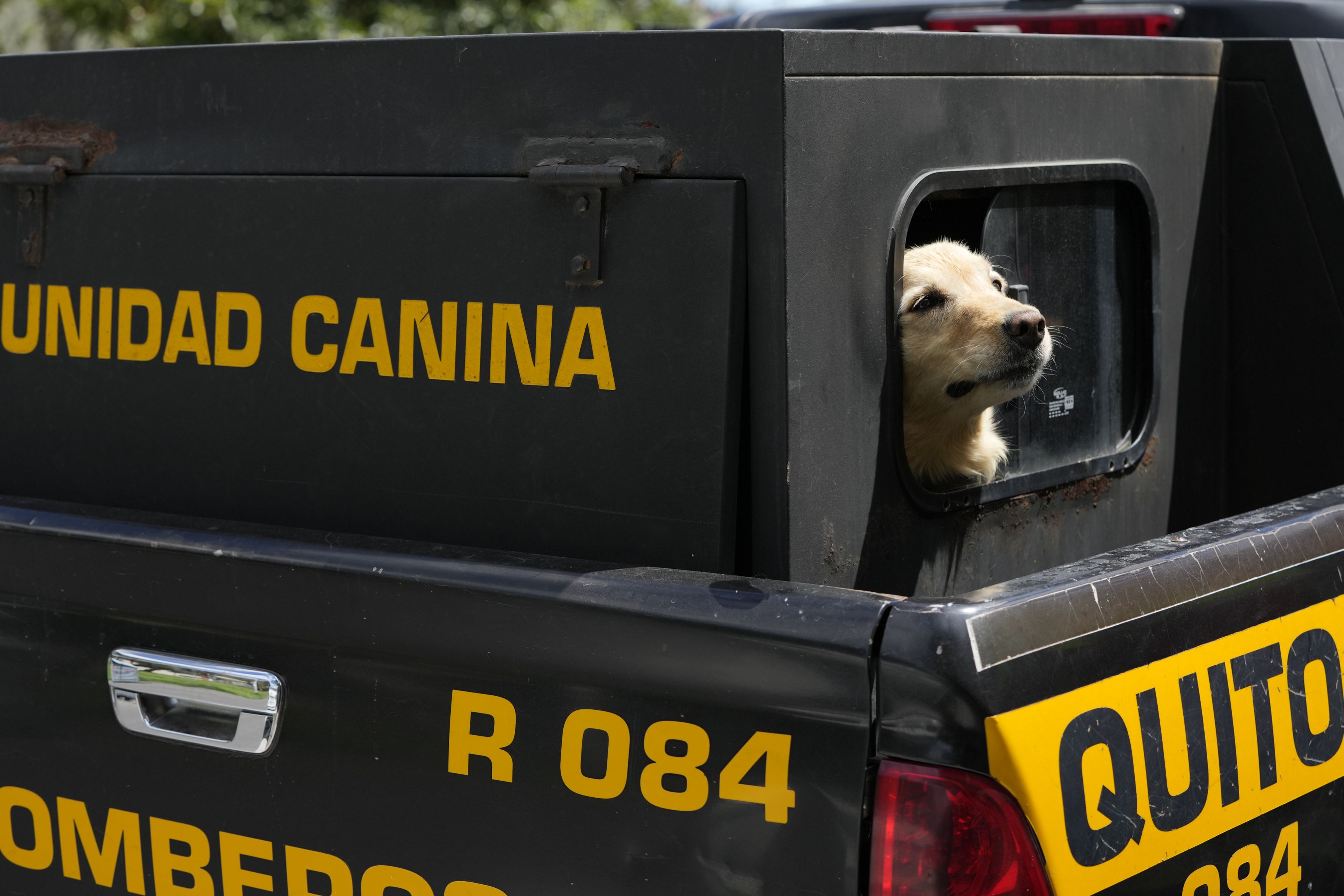 Firefighter dog Gaia arrives for her retirement ceremony, along with other dogs, in Quito, Ecuador, Monday, May 20, 2024. The retired firefighter dogs were adopted by local residents. (Photo by Dolores Ochoa/AP Photo)