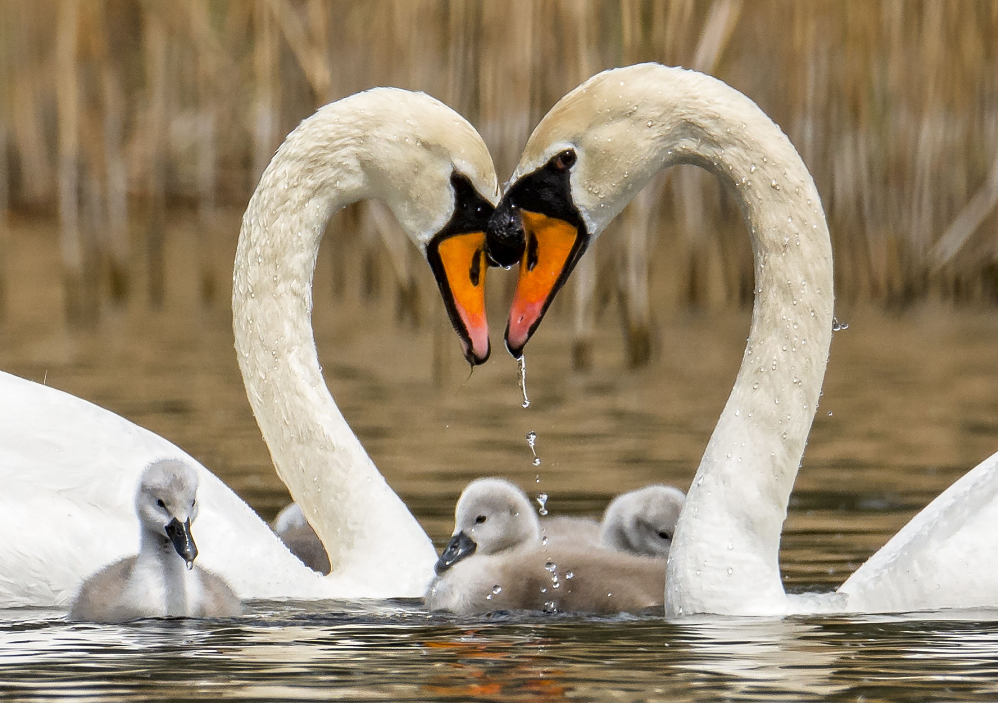 This swan couple has a romantic moment as they create a heart shape while nuzzling their beaks together over their cygnets swimming underneath. The tender scene was snapped by Philip Wilson at Bedfont Lakes near Heathrow Airport in London in the last decade of May 2024. (Photo by Philip Wilson/Solent News & Photo Agency)