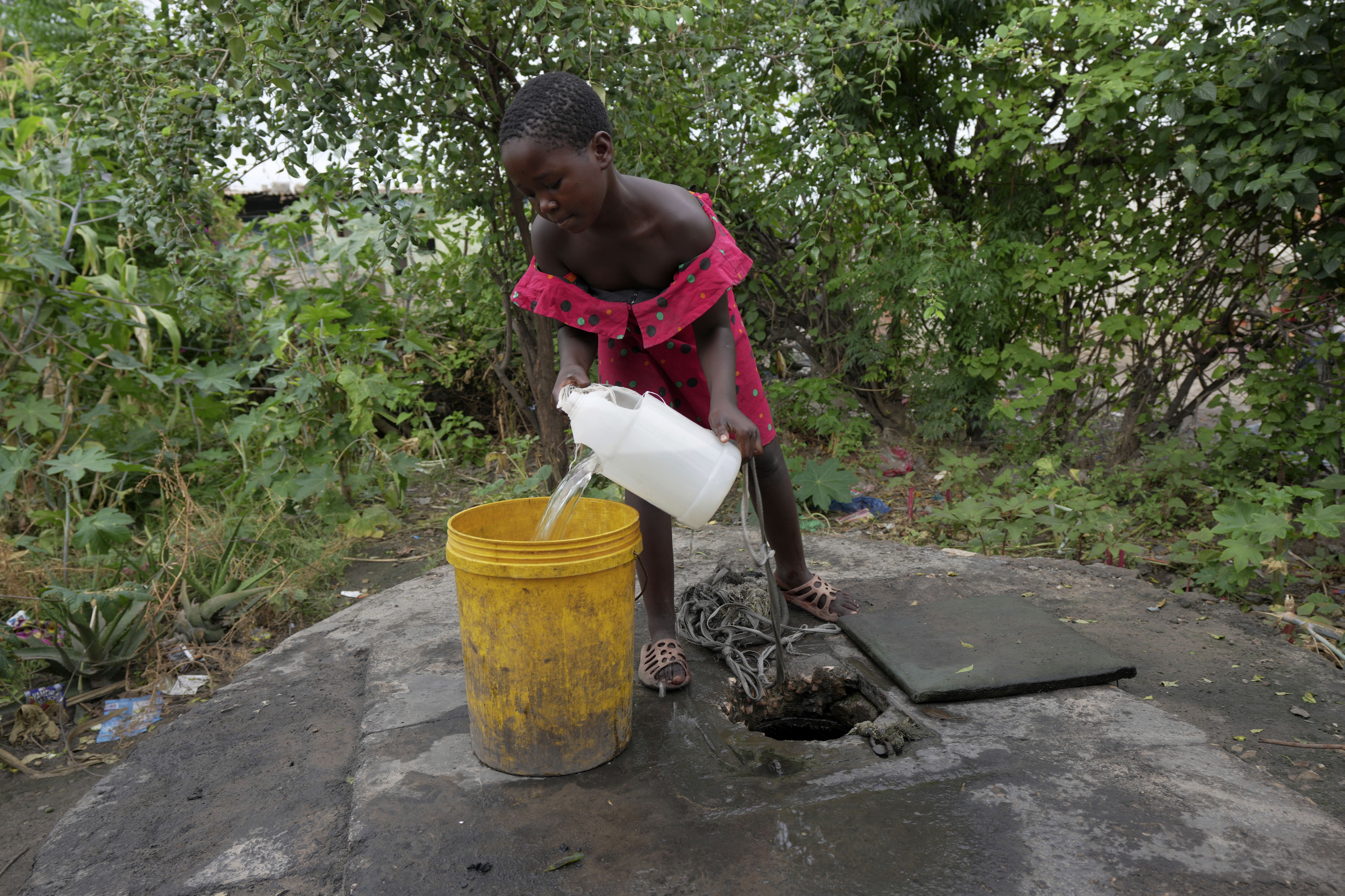 A young girl fetches water from a well in Lilanda township in Lusaka, Zambia, Saturday March 9, 2024. Lilanda, an impoverished township on the edge of the Zambian capital of Lusaka, is a typical cholera hotspot. Stagnant pools of water dot the dirt roads. Clean water is gold dust. Extreme weather events have hit parts of Africa relentlessly in the last three years, with tropical storms, floods and drought causing crises of famine and displacement, and leaving another deadly threat in their aftermath: some of the continent's worst outbreaks of cholera. (Photo by Tsvangirayi Mukwazhi/AP Photo)