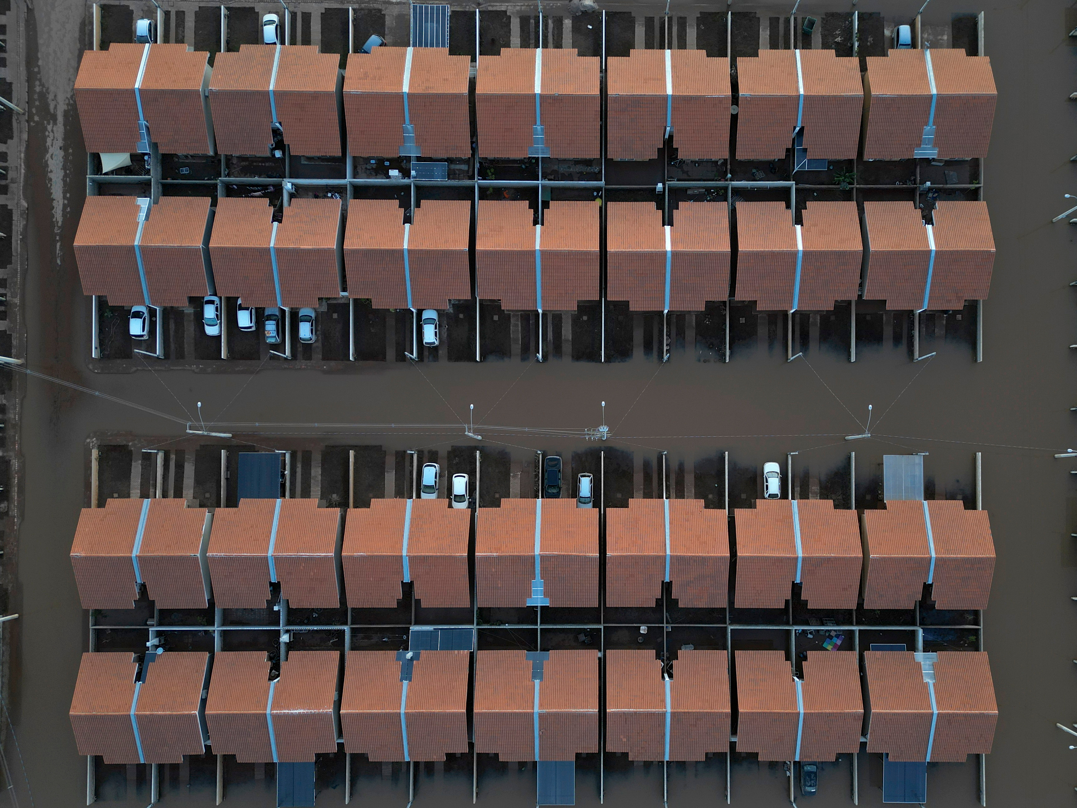 An aerial picture shows a flooded area in Eldorado, metropolitan region of Porto Alegre, Brazil, 09 May 2024. The Brazilian Armed Forces have deployed a large scale operation to help victims of the devastating floods in the south of the country, which have left at least 108 people dead and more than 130 missing. (Photo by Isaac Fontana/EPA/EFE)