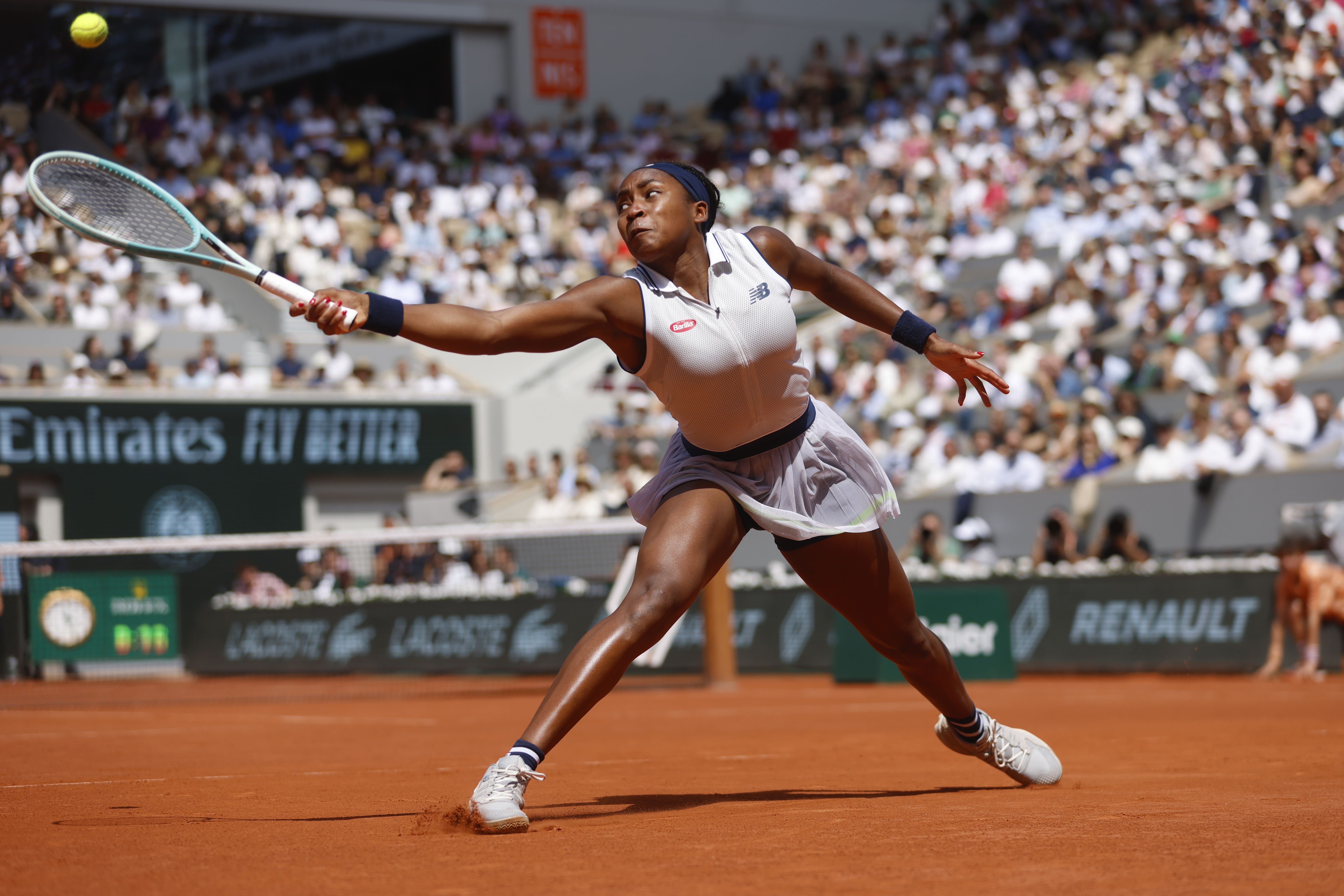 Coco Gauff of the U.S. plays a shot against Poland's Iga Swiatek during their semifinal match of the French Open tennis tournament at the Roland Garros stadium in Paris, Thursday, June 6, 2024. (Photo by Jean-Francois Badias/AP Photo)