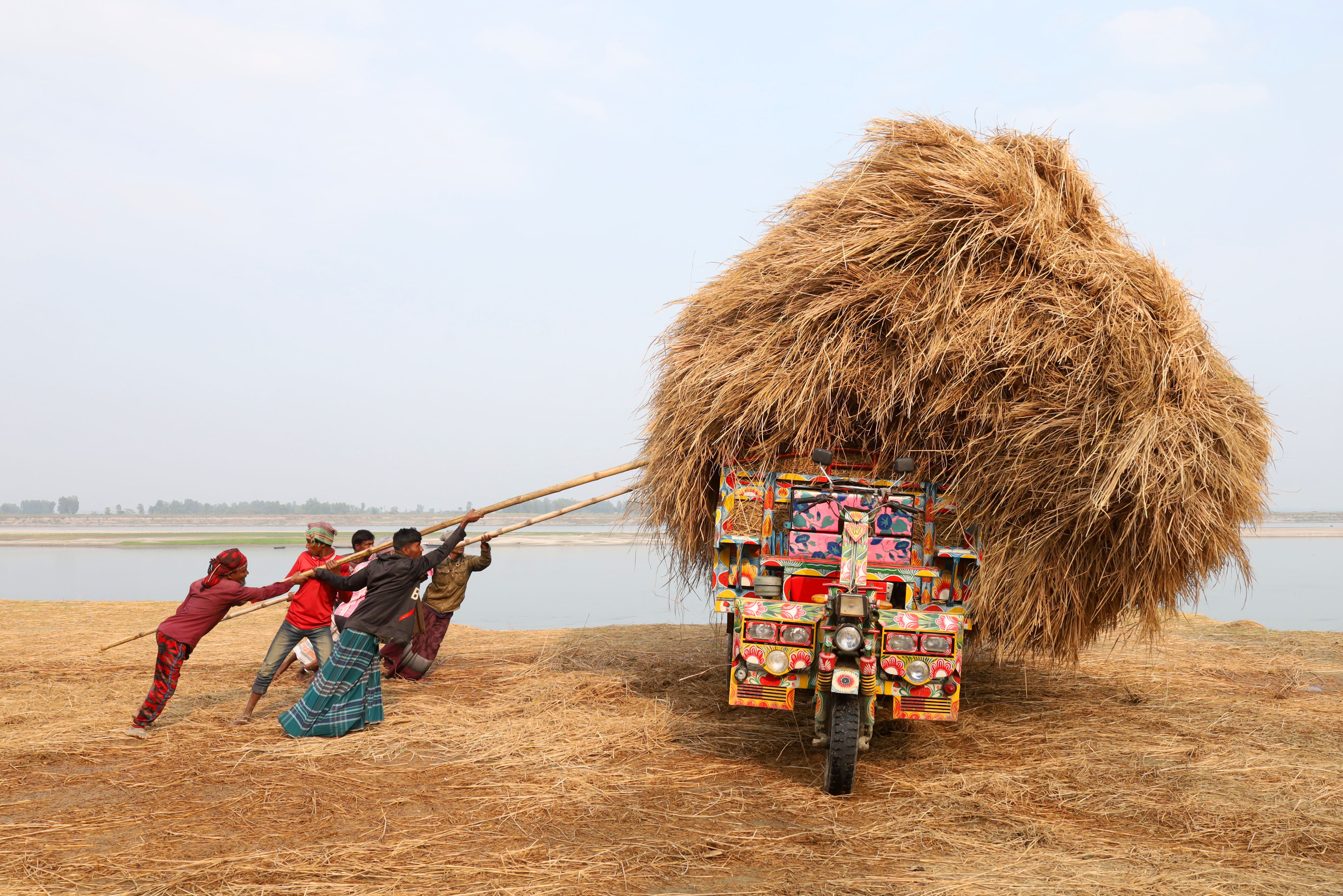 Driver carries paddy straw in small trucks and unloads in Kazipur Upazila, Sirajganj District, Bangladesh on April 22, 2024. Paddy straw is a by-product for the farmers so they usually sell it for $7 per 100kg to wholesalers. The straw is then sold by the wholesalers for between $8 - $10. Farmers use hay as food and bedding for their livestock. In addition to this, straw is used for various other purposes including house canopies and a form of biofuel. (Photo by Syed Mahabubul Kader/ZUMA Press Wire/Rex Features/Shutterstock)