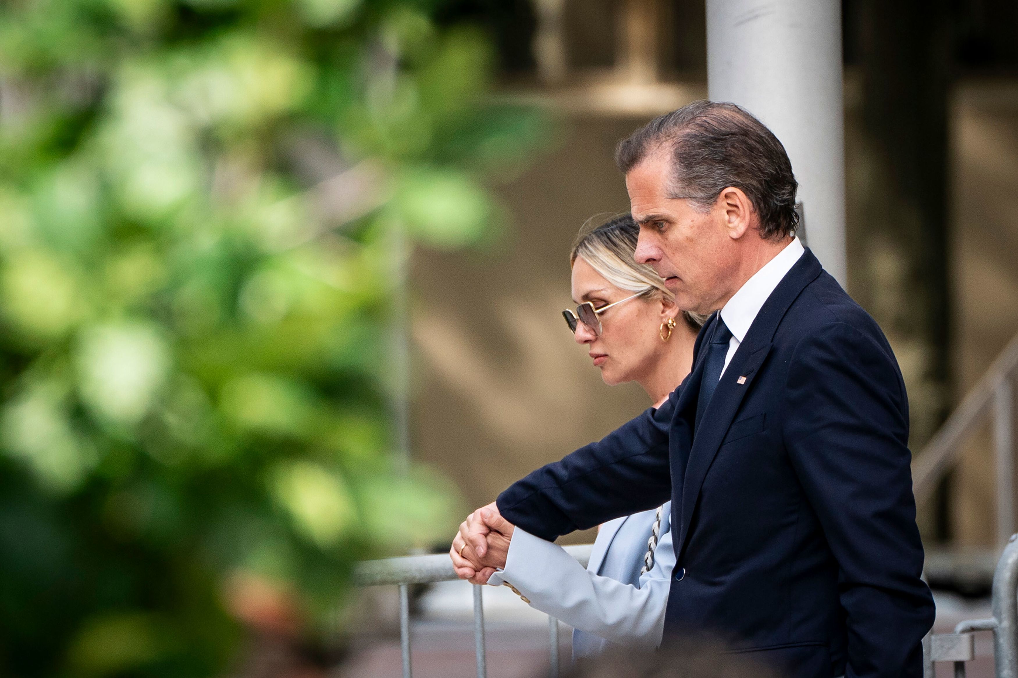 Hunter Biden, son of US President Joe Biden, leaves a federal courthouse in Wilmington, Delaware, along with his wife, Melissa, on Tuesday, June 4, 2024. Hunter Biden is standing trial on felony gun charges. He is accused of illegally purchasing and possessing a gun while abusing or being addicted to drugs, a violation of federal law. He pleaded not guilty to the three charges, though he has been open about his struggles with alcohol and crack cocaine addiction. (Photo by Haiyun Jiang/The New York Times/Redux)