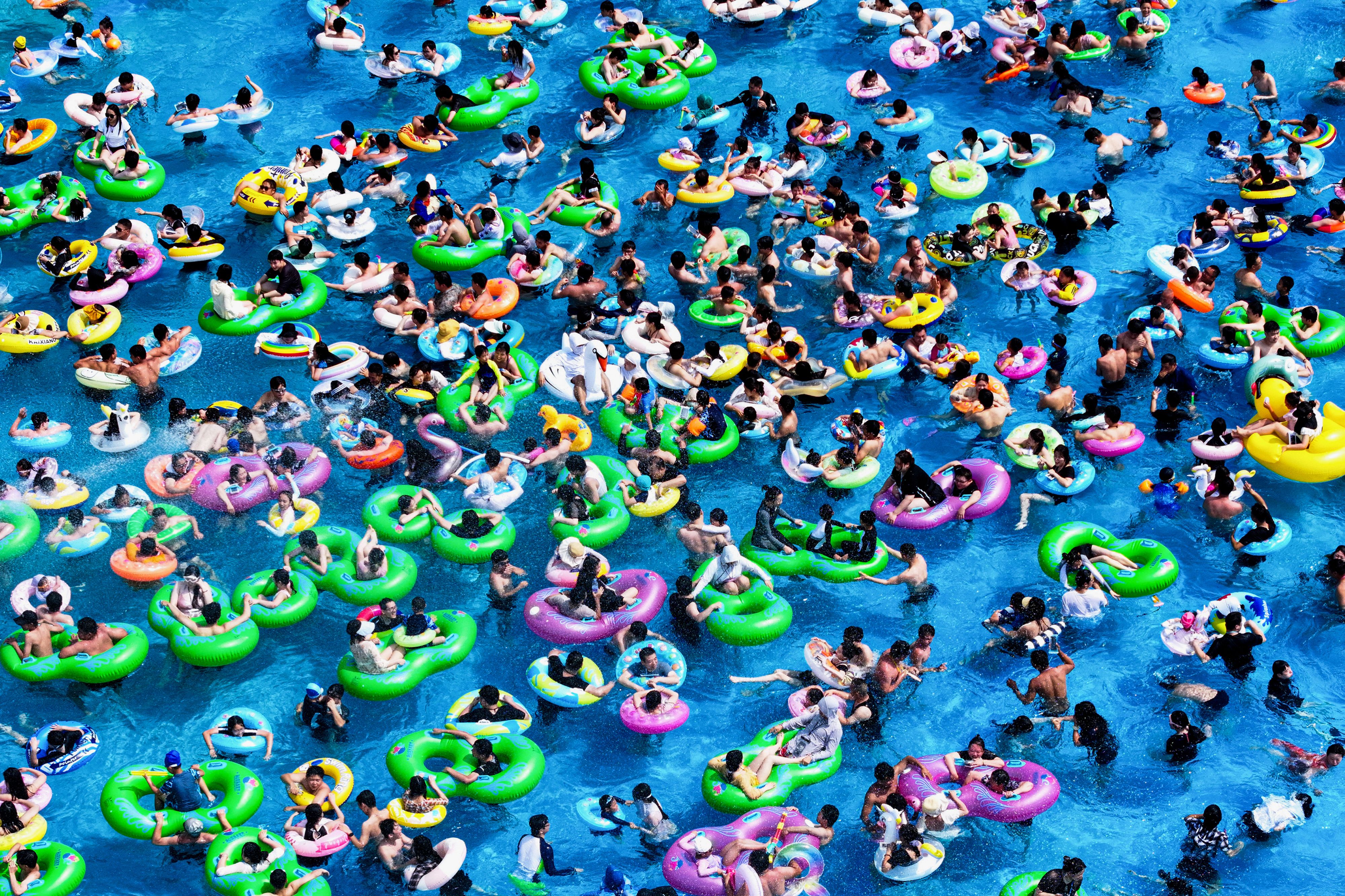 This photo taken on June 9, 2024 shows people cooling off at a water park in Nanjing, in eastern China's Jiangsu province. (Photo by AFP Photo/China Stringer Network)