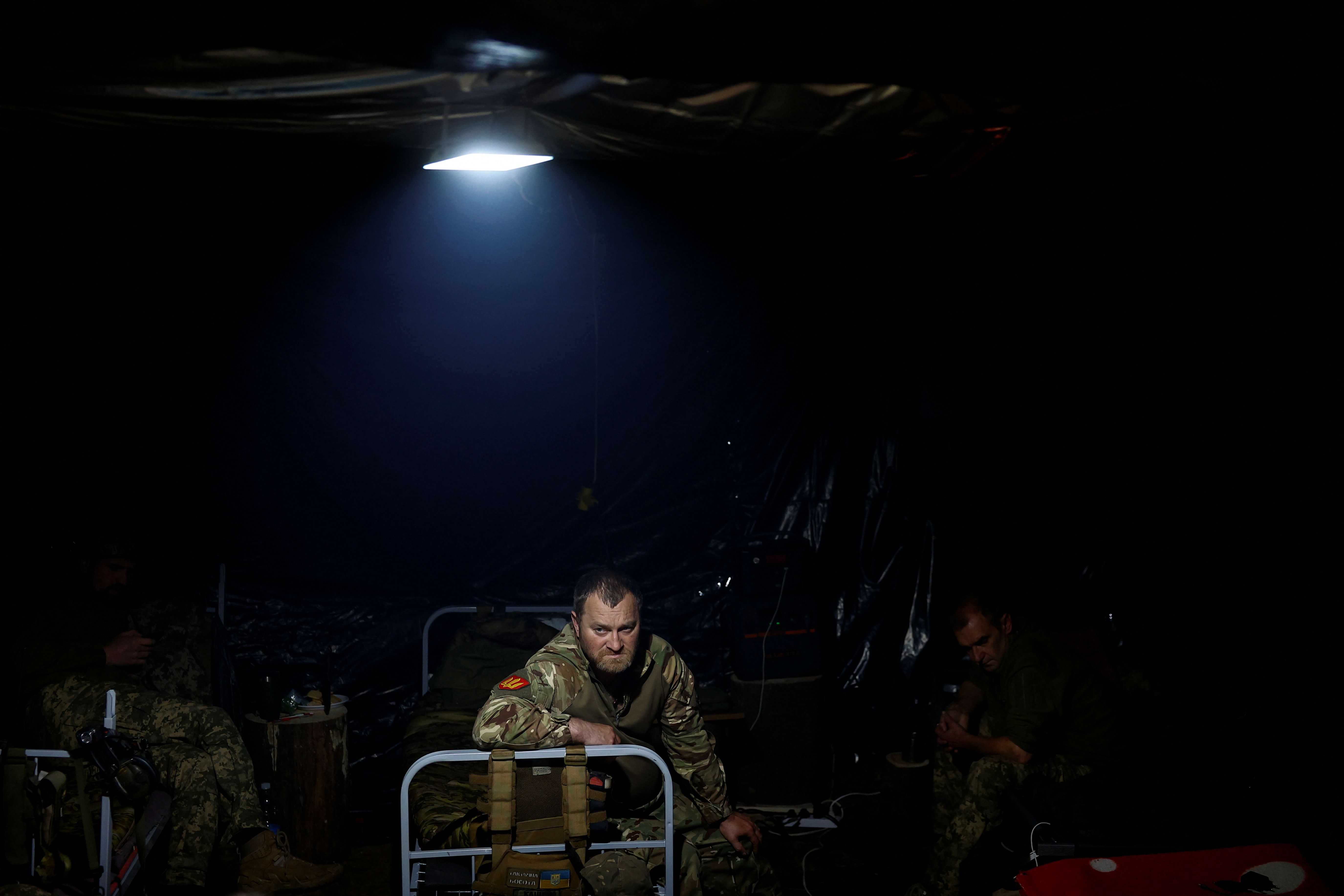 Ukrainian servicemen of the 42nd Separate Mechanized Brigade wait for a combat work inside a dugout at a position in Kharkiv region, Ukraine on May 16, 2024. (Photo by Valentyn Ogirenko/Reuters)