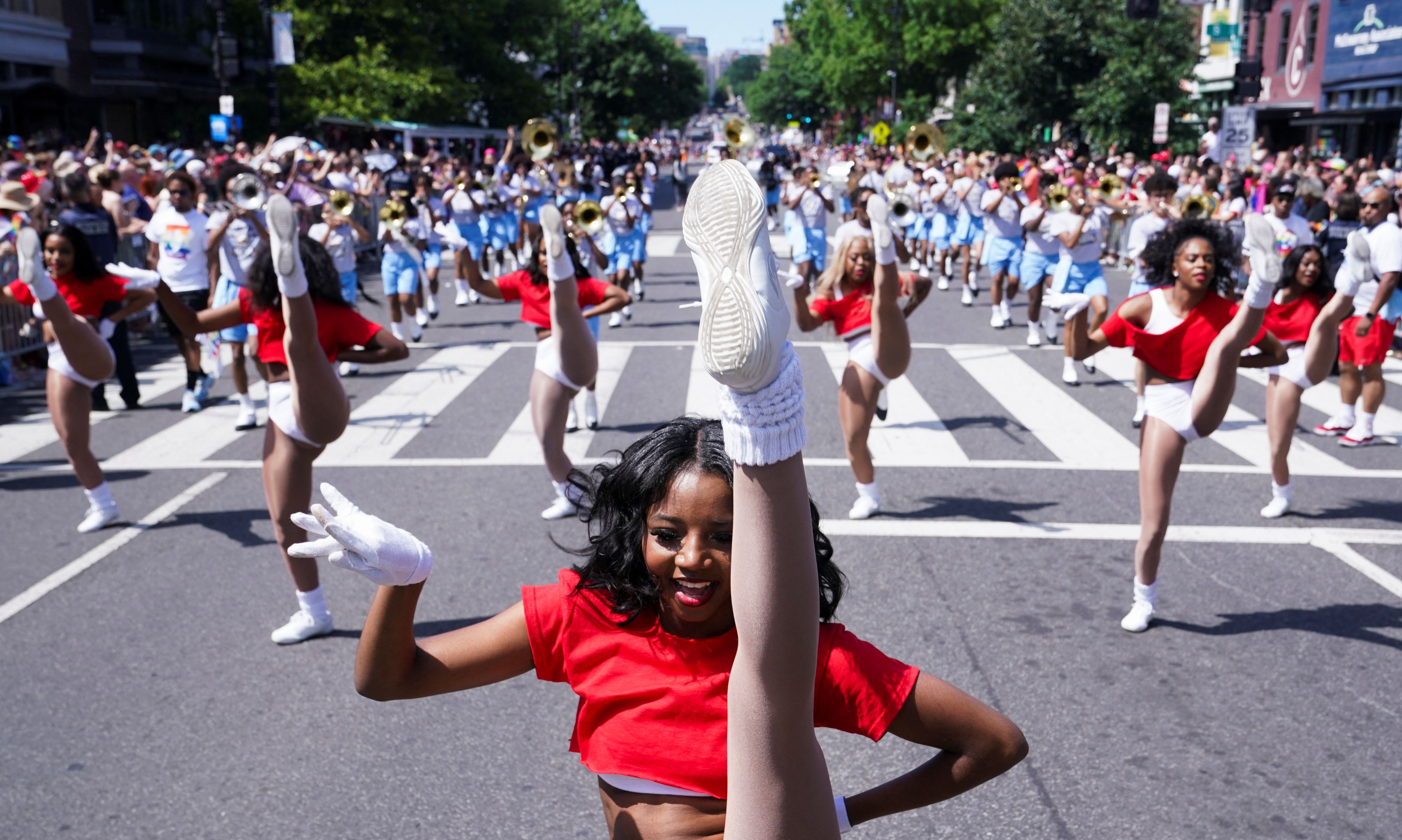 Members of the Eastern High School Dance Team take part in the annual LGBTQ+ Capital Pride parade in Washington on June 8, 2024. (Photo by Nathan Howard/Reuters)
