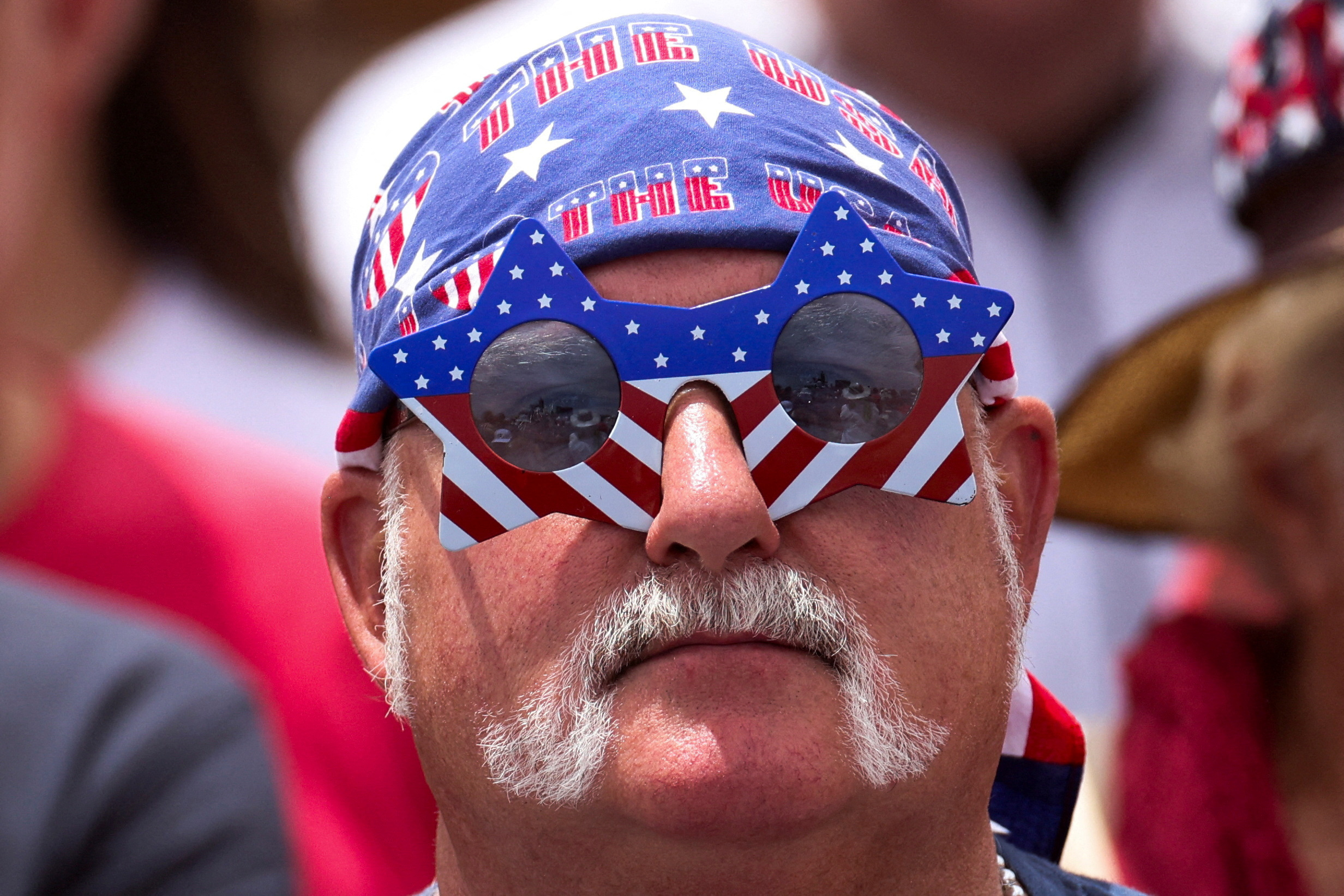 A man watches as Republican presidential candidate and former U.S. President Donald Trump holds a campaign event, in Las Vegas, Nevada on June 9, 2024. (Photo by Brendan McDermid/Reuters)