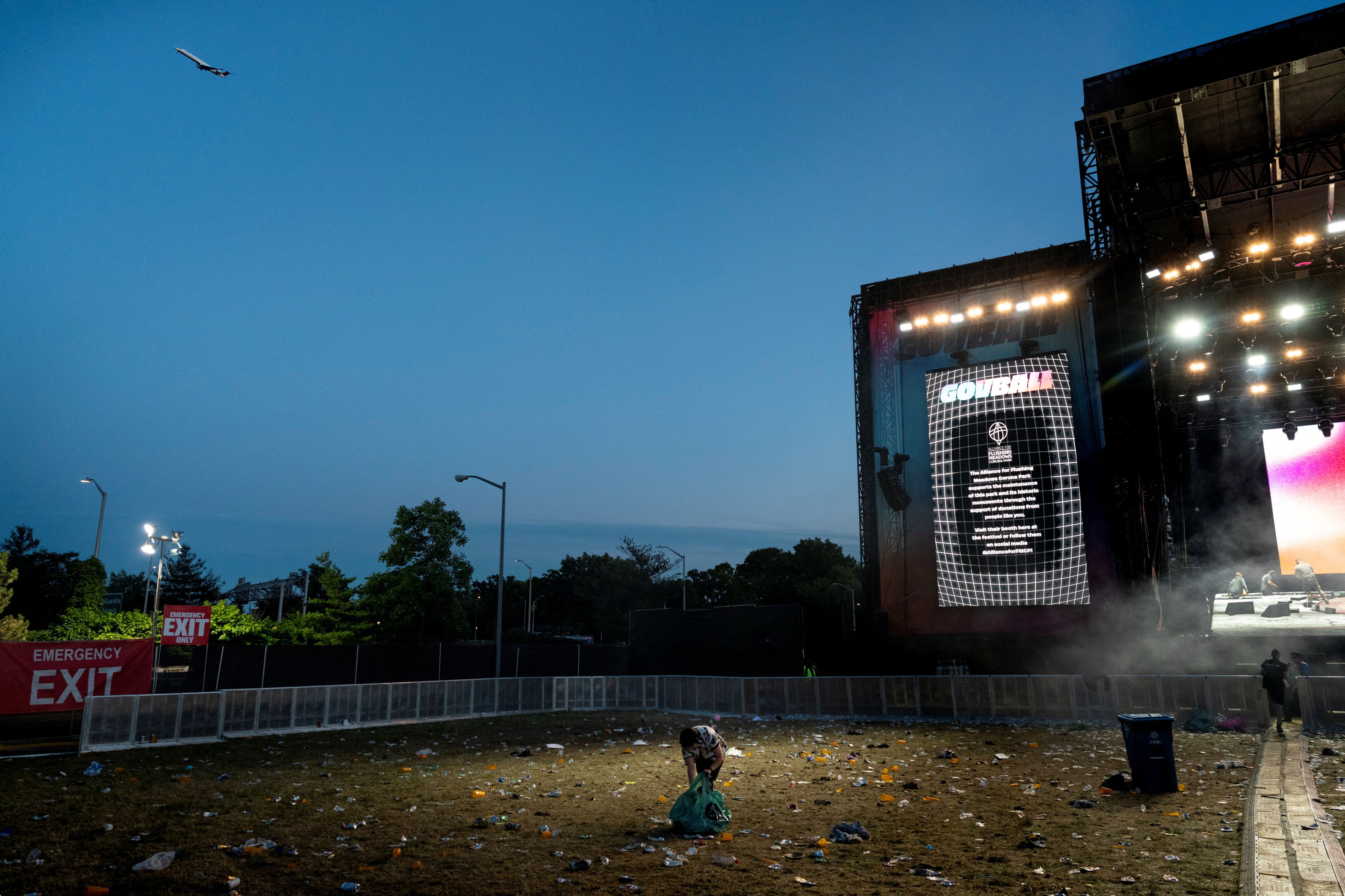 A worker cleans up garbage following a performance at the Governors Ball music festival at Corona Park in the Queens borough of New York City, U.S., June 9, 2024. (Photo by Cheney Orr/Reuters)