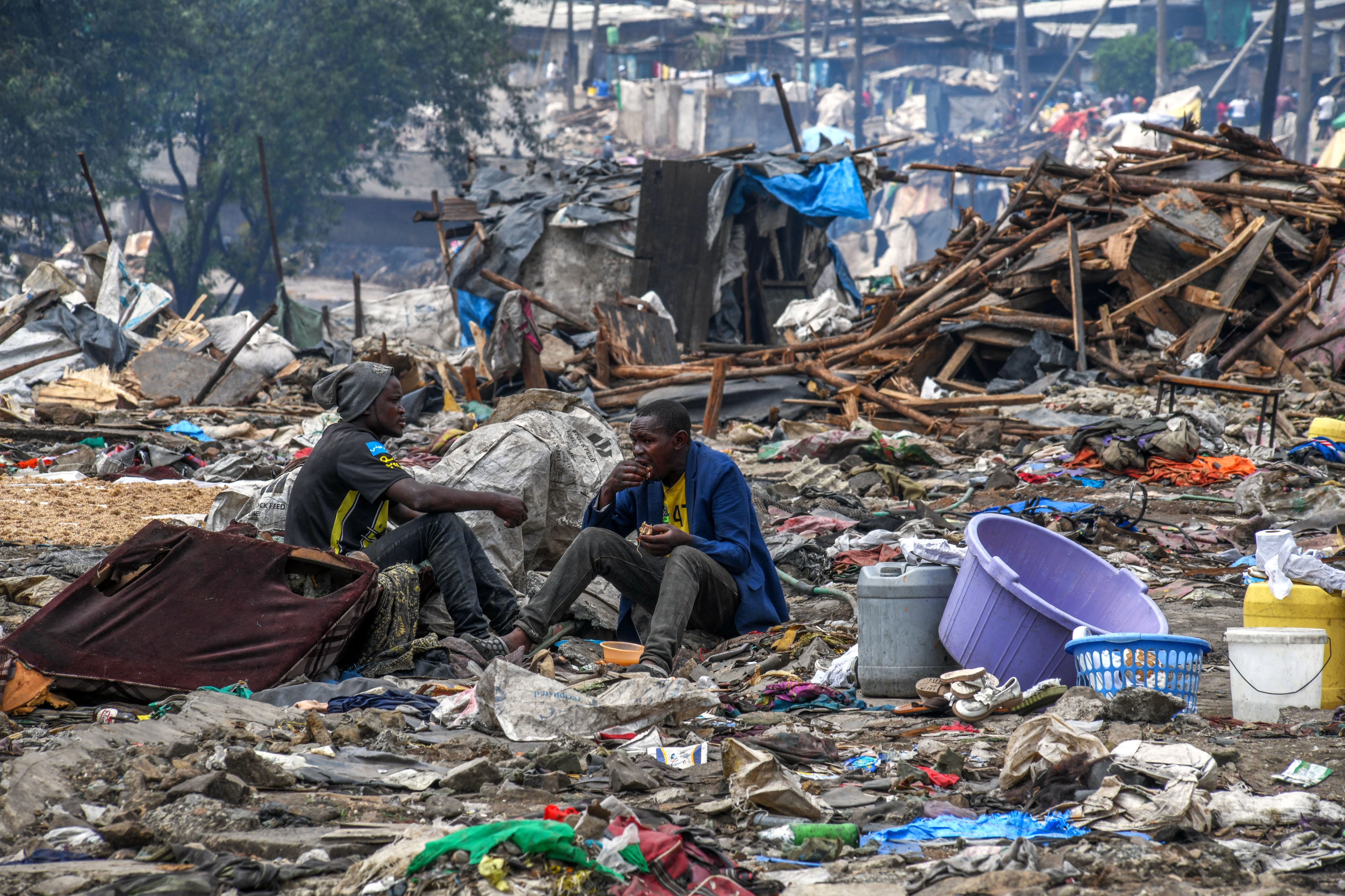 Kenyan families whose homes were demolished by the Kenyan government to prevent the destruction of risky structures after the floods, try to continue their daily lives under difficult conditions in Nairobi, Kenya on June 03, 2024. The Kenyan government has begun demolishing risky structures in the Mathare slum on the banks of the river in Nairobi to prevent flood destruction. (Photo by Gerald Anderson/Anadolu via Getty Images)