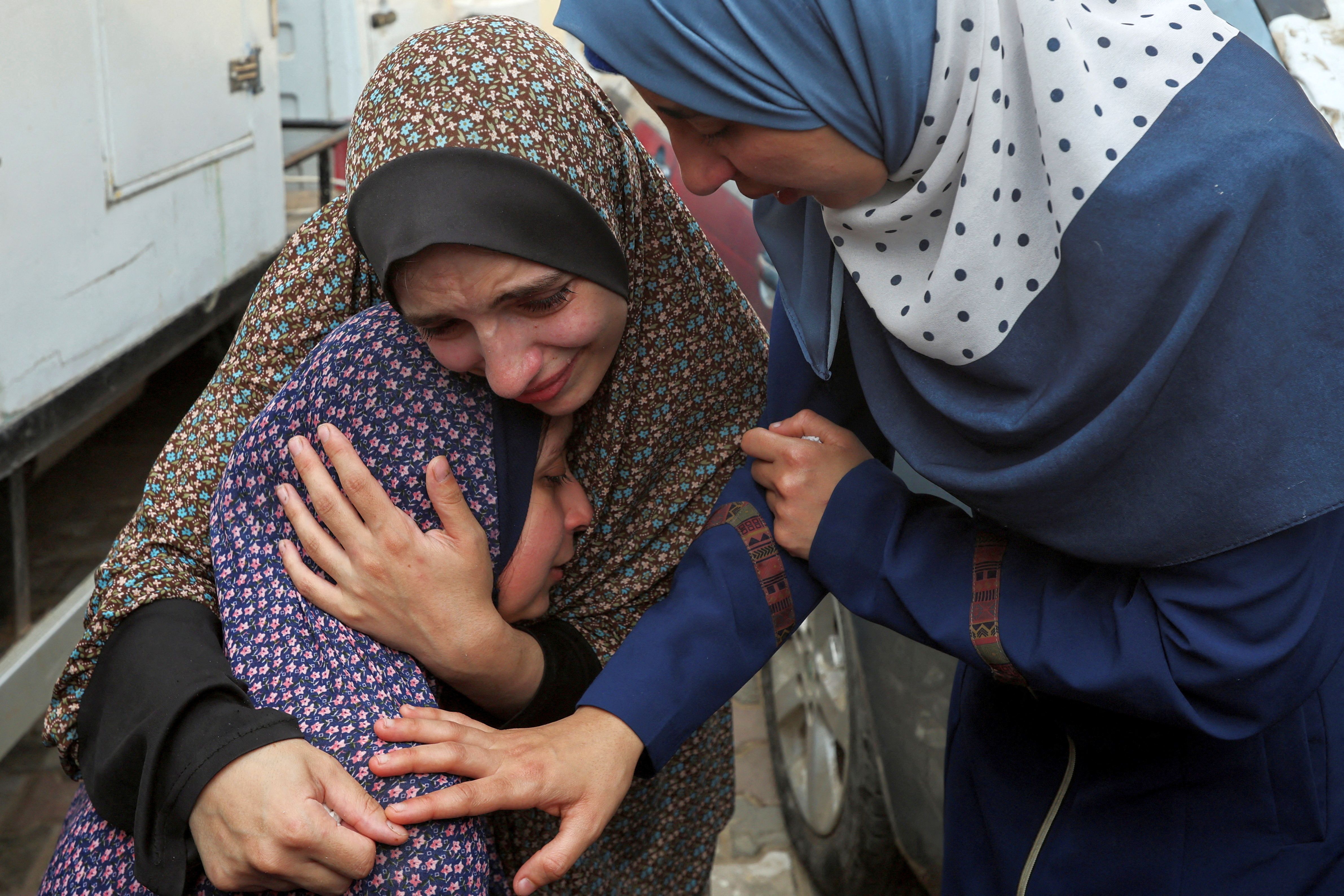Mourners react during the funeral of Palestinians killed in Israeli strikes, amid Israel-Hamas conflict, at Al-Aqsa hospital in Deir Al-Balah in the central Gaza Strip, on June 4, 2024. (Photo by Ramadan Abed/Reuters)