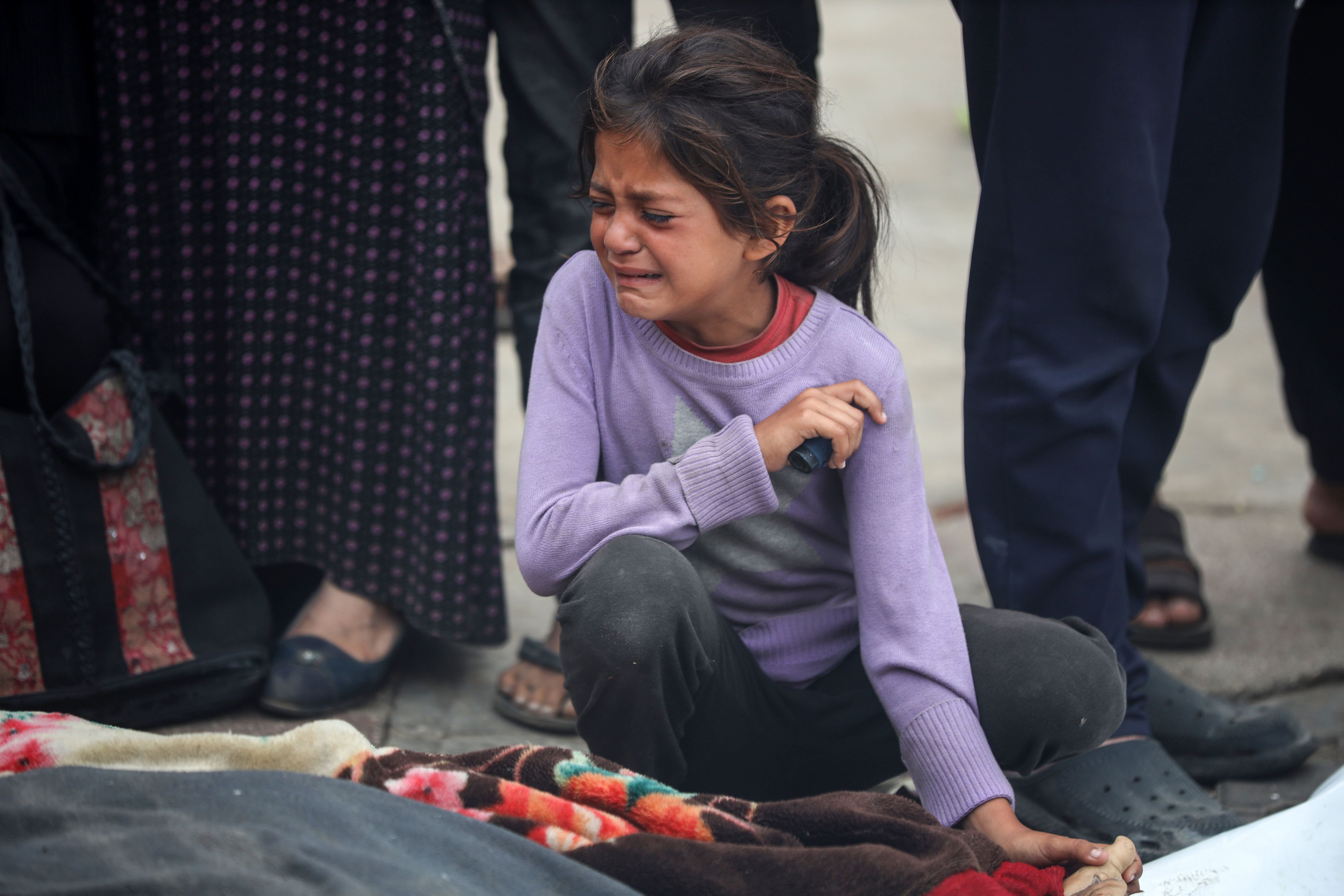 Relatives are mourning over the bodies of people killed in an Israeli airstrike at a UN school housing displaced Palestinians in Nuseirat, at a hospital ground in Deir el-Balah, on June 6, 2024, amid the ongoing conflict between Israel and the Hamas militant group. A hospital in Gaza is saying on June 6 the death toll from an Israeli airstrike on a UN school, which the military is saying housed a “Hamas compound”, has risen to 37. (Photo by Majdi Fathi/NurPhoto/Rex Features/Shutterstock)