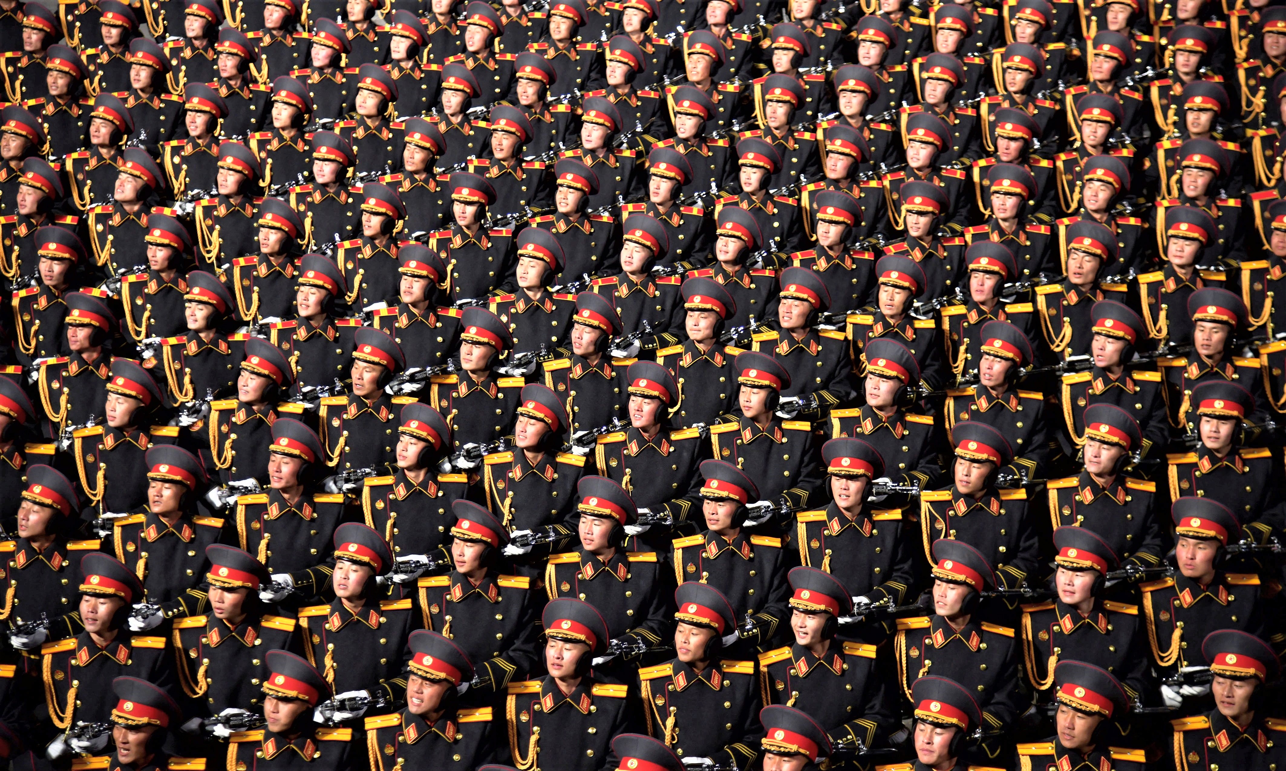 Troops march during a military parade to mark the 75th founding anniversary of North Korea's army, at Kim Il Sung Square in Pyongyang, North Korea on February 8, 2023. (Photo by KCNA via Reuters)