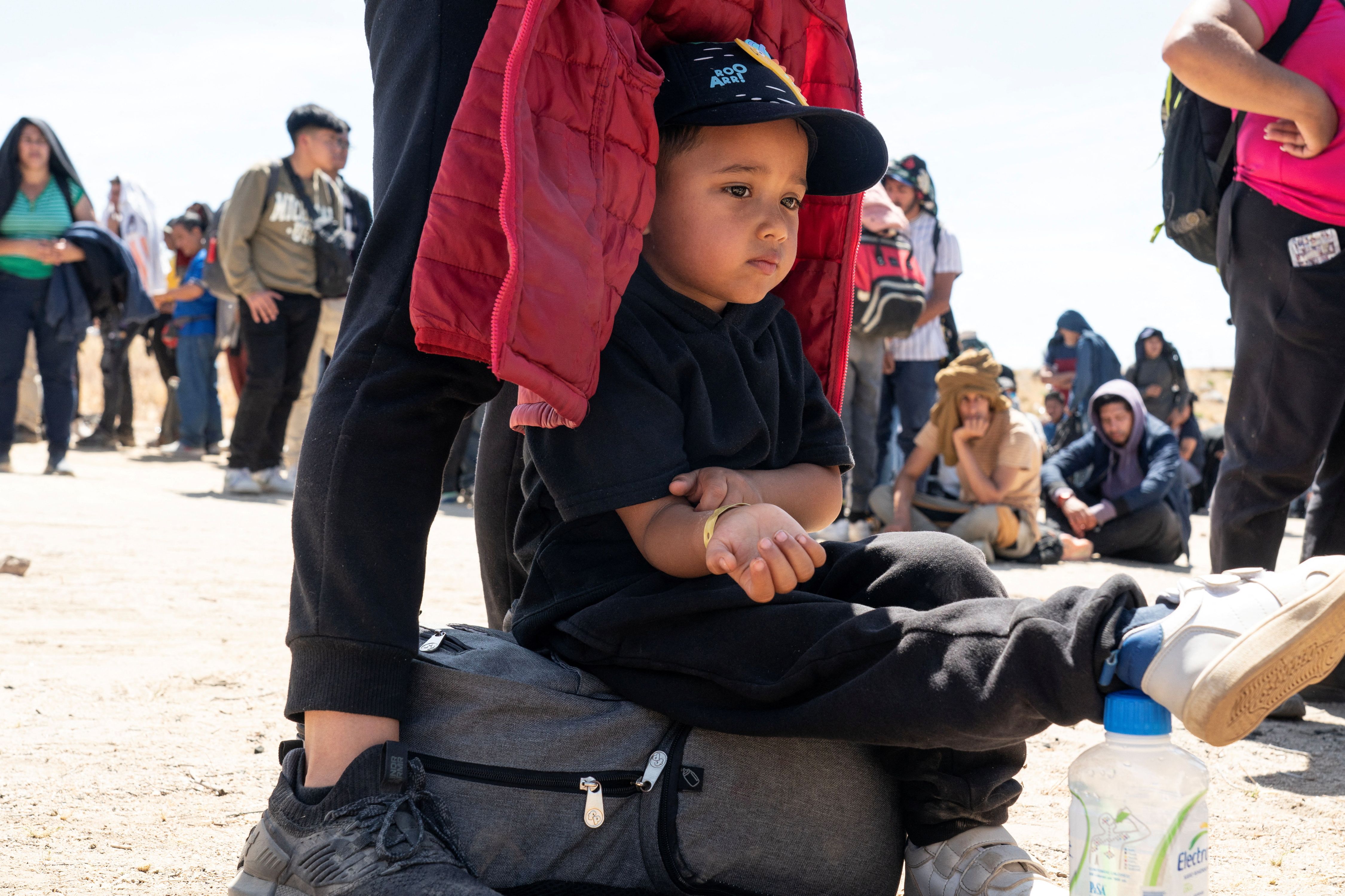Matias, 4, an asylum-seeking migrant from Colombia waits with his mother to be transported at a staging area, after U.S. President Joe Biden announced a sweeping border security enforcement effort, in Jacumba Hot Springs, California on June 10, 2024. (Photo by Go Nakamura/Reuters)