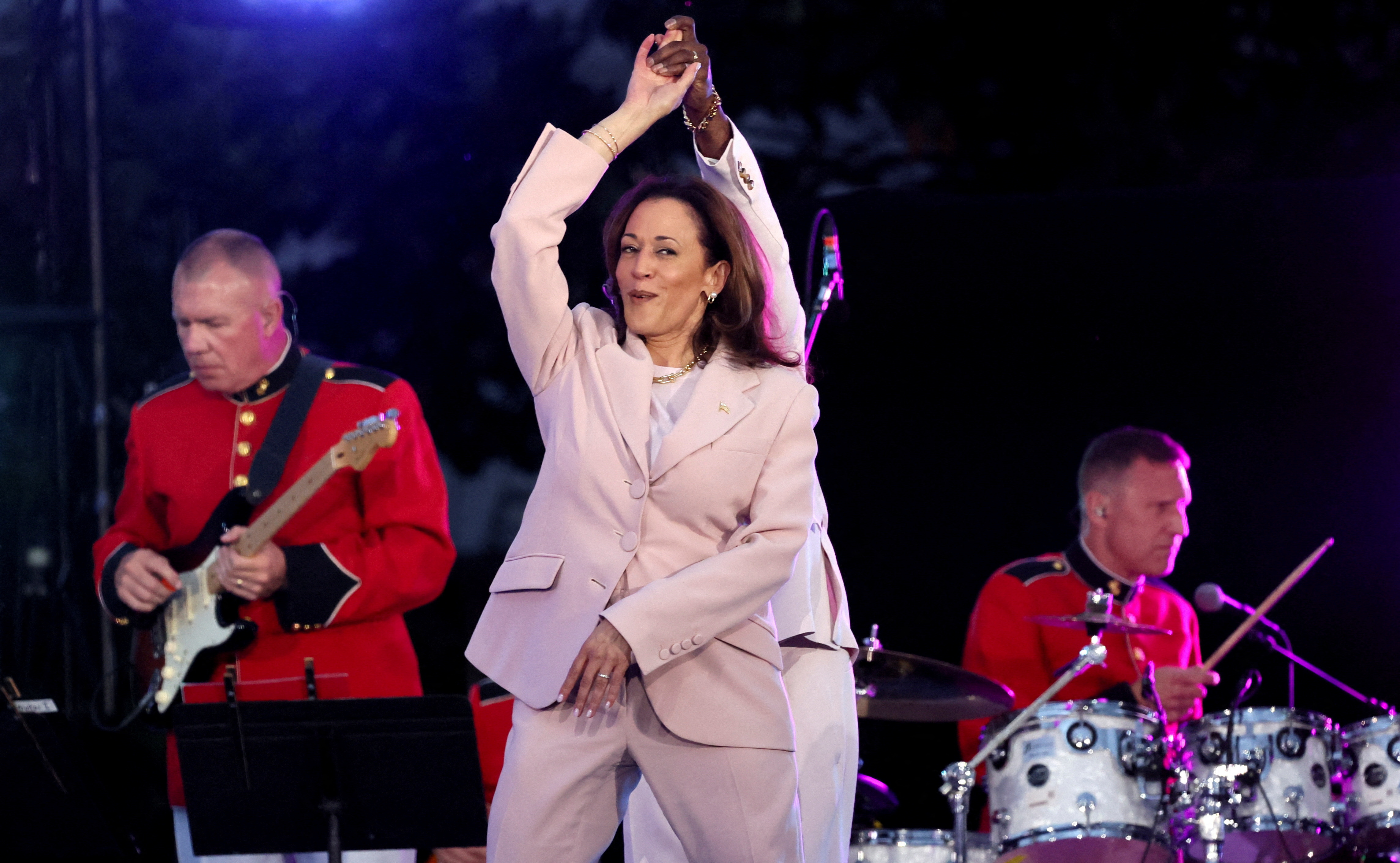 U.S. Vice-President Kamala Harris dances with Kirk Franklin during a Juneteenth concert hosted by U.S. President Joe Biden on the South Lawn at the White House in Washington, D.C., U.S. June 10, 2024. (Photo by Leah Millis/Reuters)