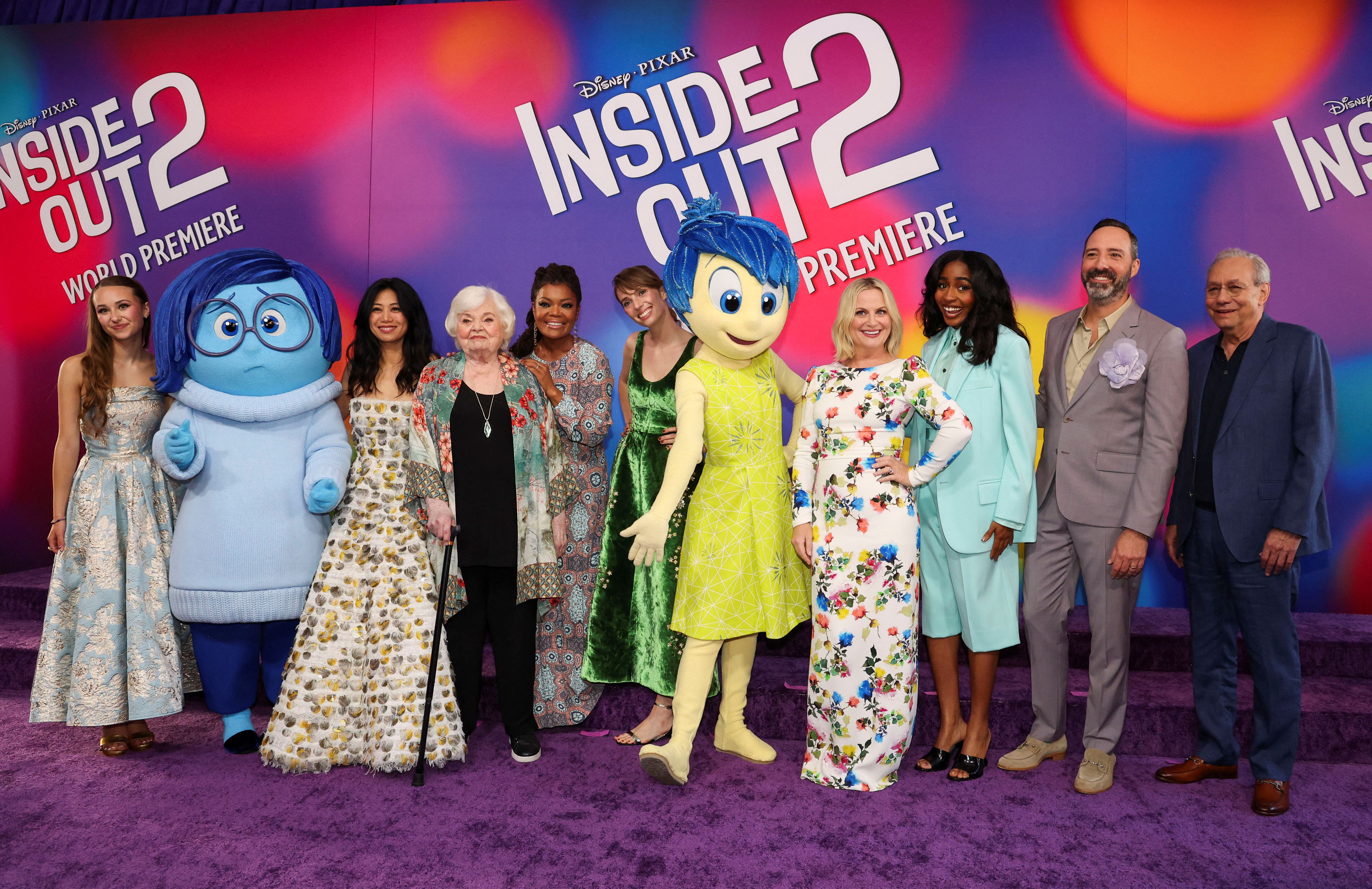 Liza Lapira, June Squibb, Yvette Nicole Brown, Maya Hawke ,Kensington Tallman, Amy Poehler, Ayo Edebiri, Tony Hale and Lewis Black attend the world premiere of the film “Inside Out 2” in Los Angeles, California on June 11, 2024. (Photo by Mario Anzuoni/Reuters)