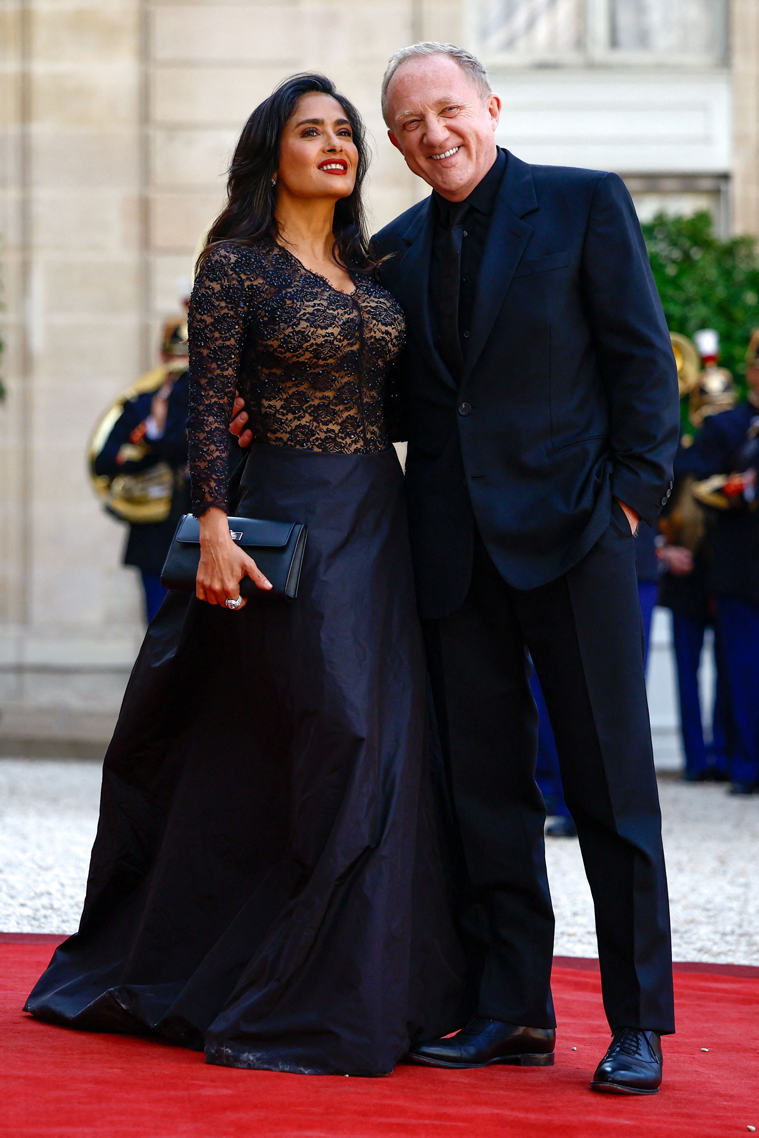 Mexican-American actress Salma Hayek and her husband Francois-Henri Pinault arrive to attend a state dinner in honor of U.S. President Joe Biden and first lady Jill Biden at the Elysee Palace in Paris, France on June 8, 2024. (Photo by Sarah Meyssonnier/Reuters)