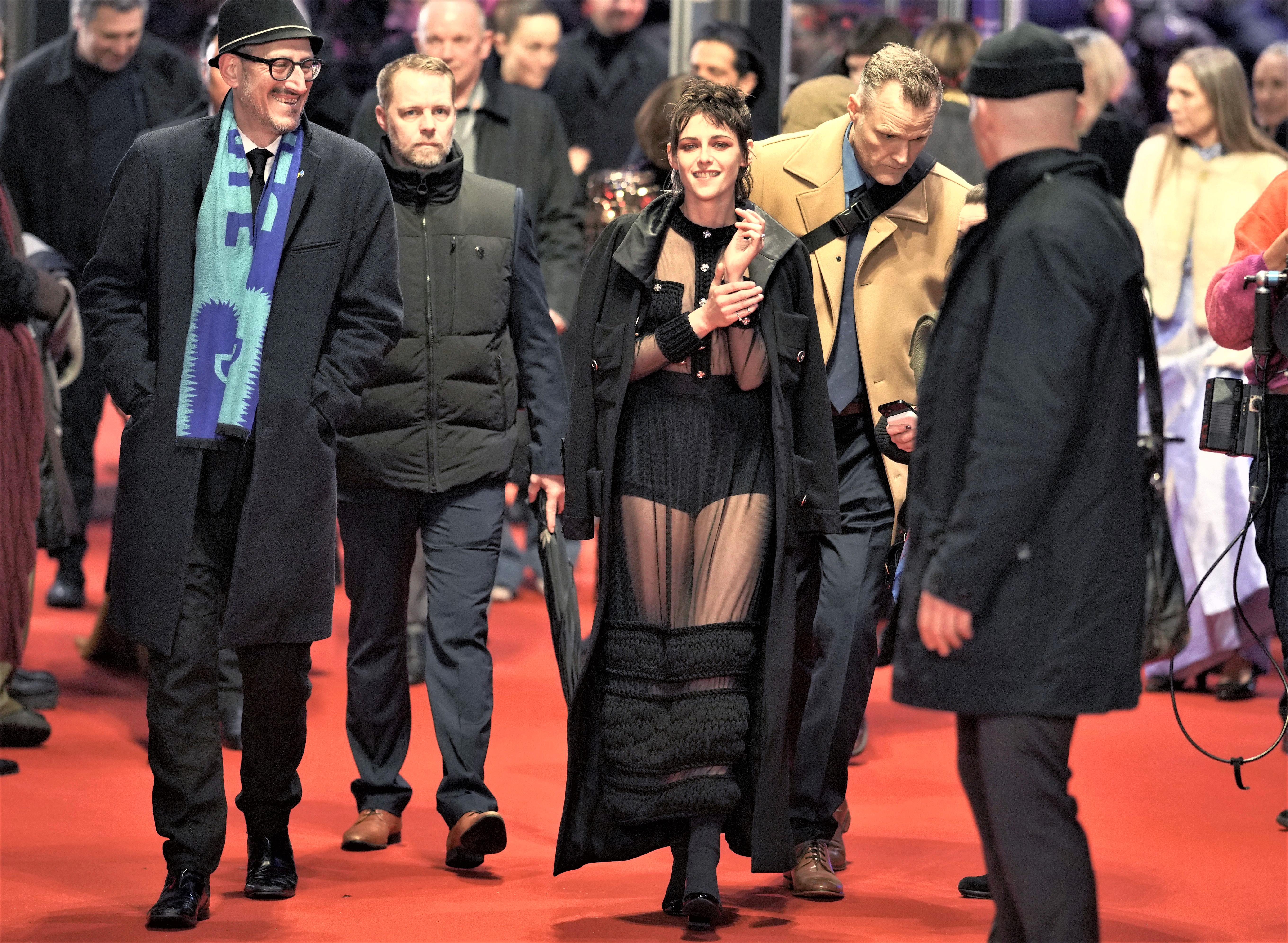 Head of jury, American actress Kristen Stewart, centre, is pictured before the award ceremony of the International Film Festival, Berlinale, in Berlin, Germany, Saturday, February 25, 2023. (Photo by Markus Schreiber/AP Photo)