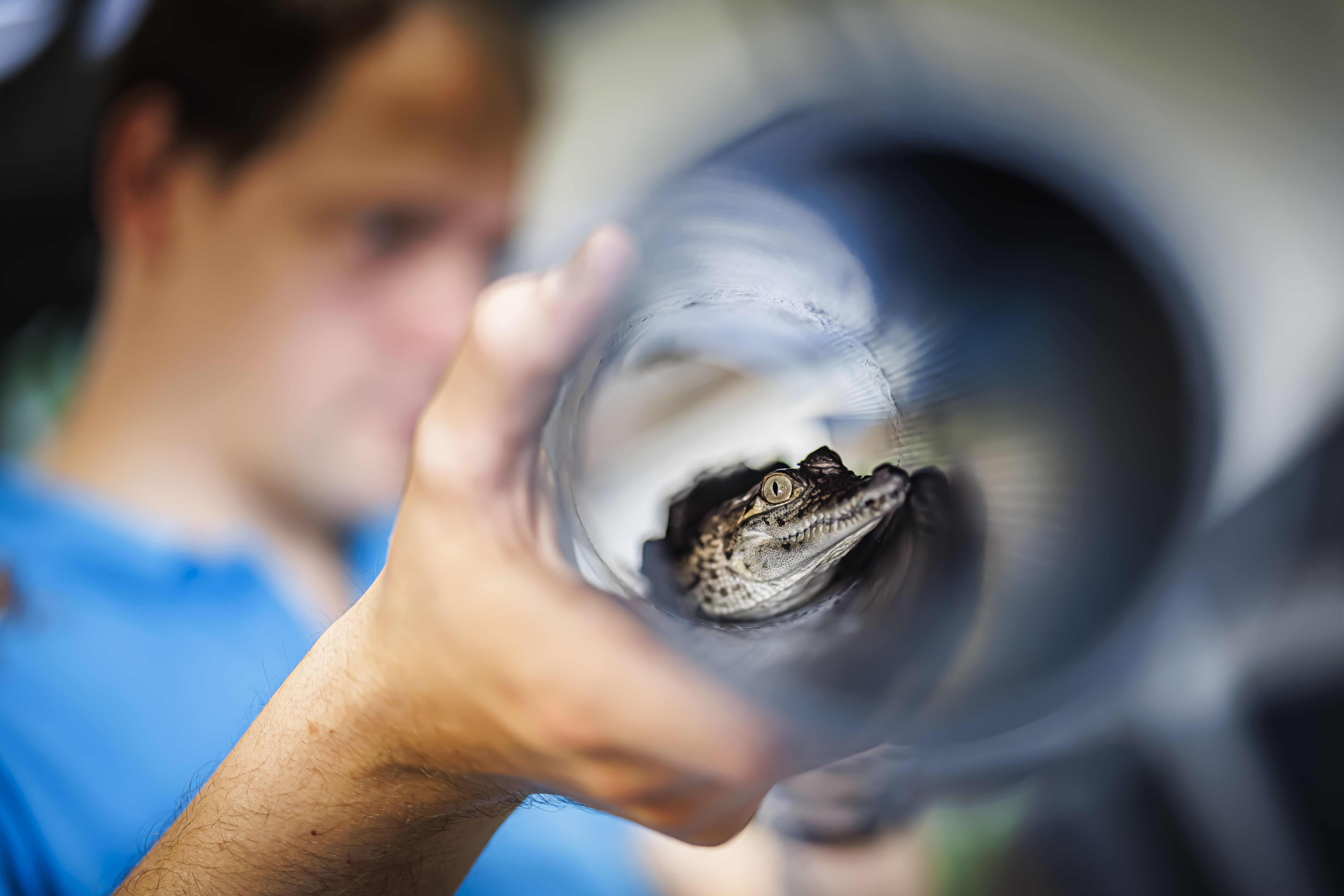 A young crocodile is handled inside a plastic tube as it is being prepared for shipping at Aquatis, Europe's largest freshwater aquarium-vivarium, in Lausanne, Switzerland, 12 June 2024. Raised by Aquatis in Lausanne, sixteen young West African crocodiles (Crocodylus suchus) embarked on their journey to Morocco on Wednesday. Sixty years after their disappearance from the area, they will be gradually reintroduced into their natural habitat, a first on the African continent. (Photo by Valentin Flauraud/EPA/EFE)