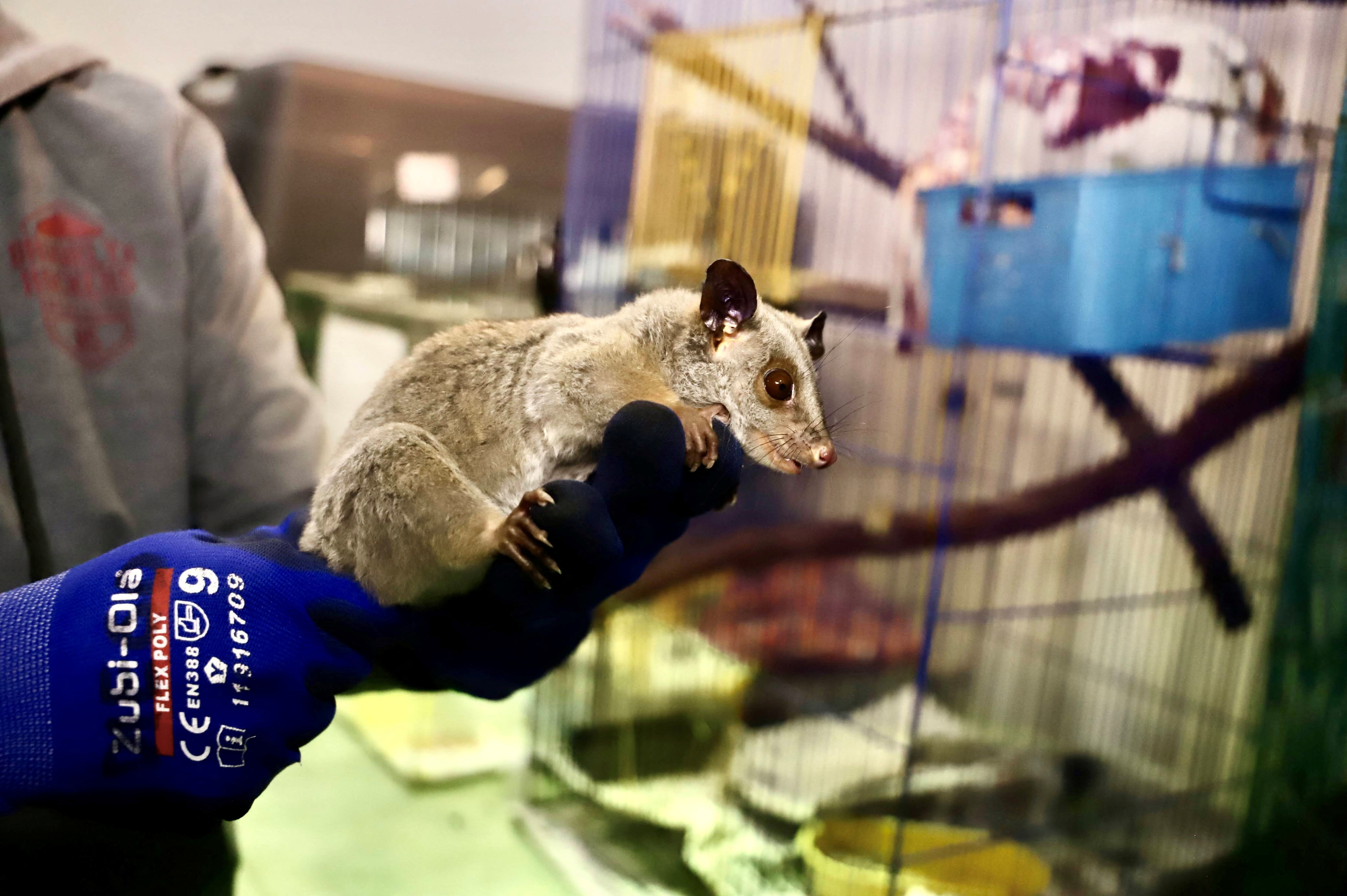 An opossum due to be released in Bogotá, Colombia early June 2024. The marsupial was a victim of wildlife trafficking. (Photo by Environment Secretariat Of The Mayor Of Bogota/Reuters)