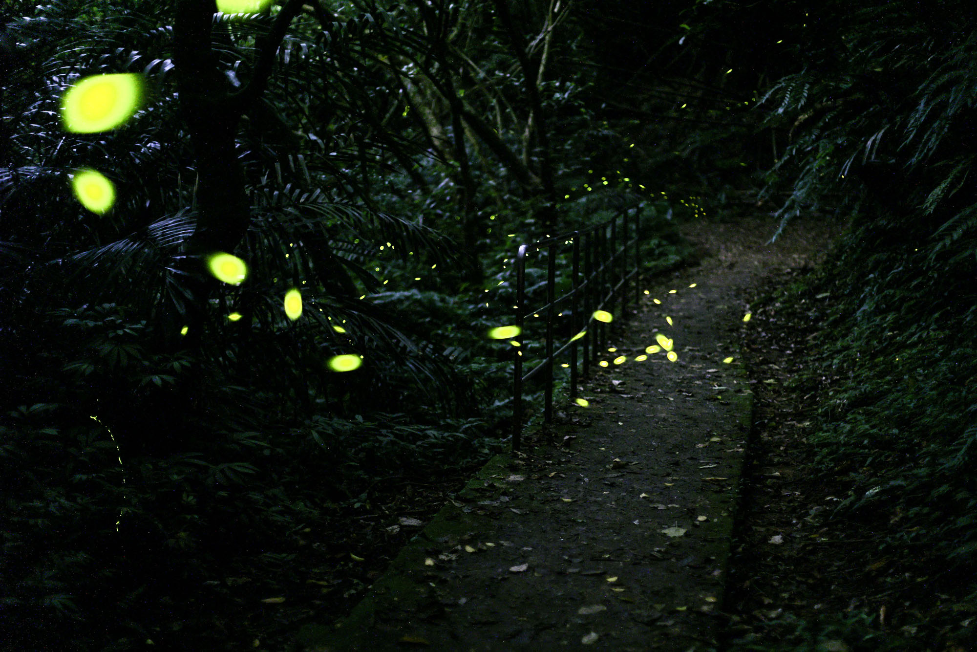 A long exposure photo shows a swarm of fireflies at Longgang Trail in Keelung on May 7, 2024. The firefly season in Taiwan usually starts in late April and lasts through early May. (Photo by I-Hwa Cheng/AFP Photo)