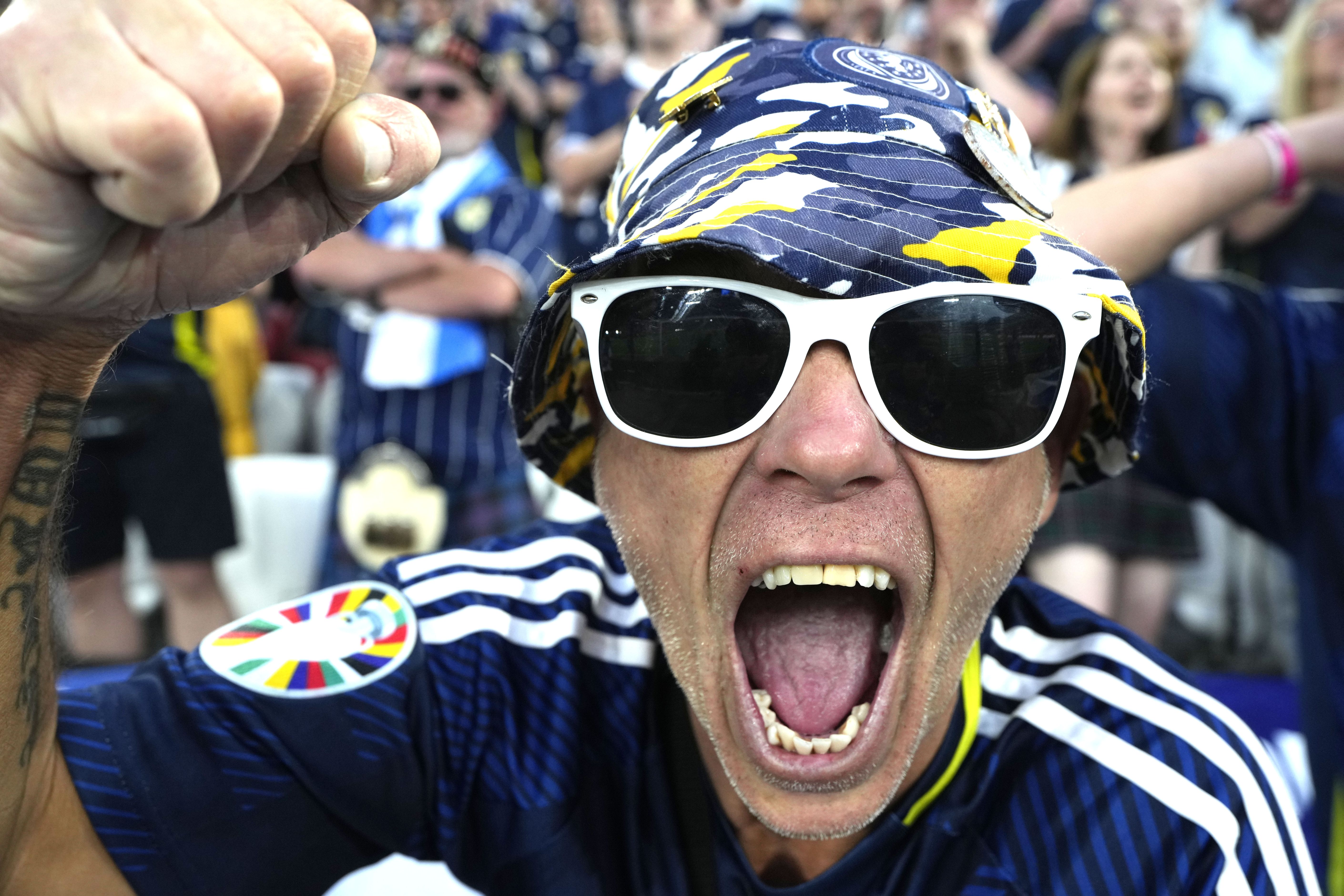 A fan cheers before the Group A match between Germany and Scotland at the Euro 2024 soccer tournament in Munich, Germany, Friday, June 14, 2024. (Photo by Ariel Schalit/AP Photo)