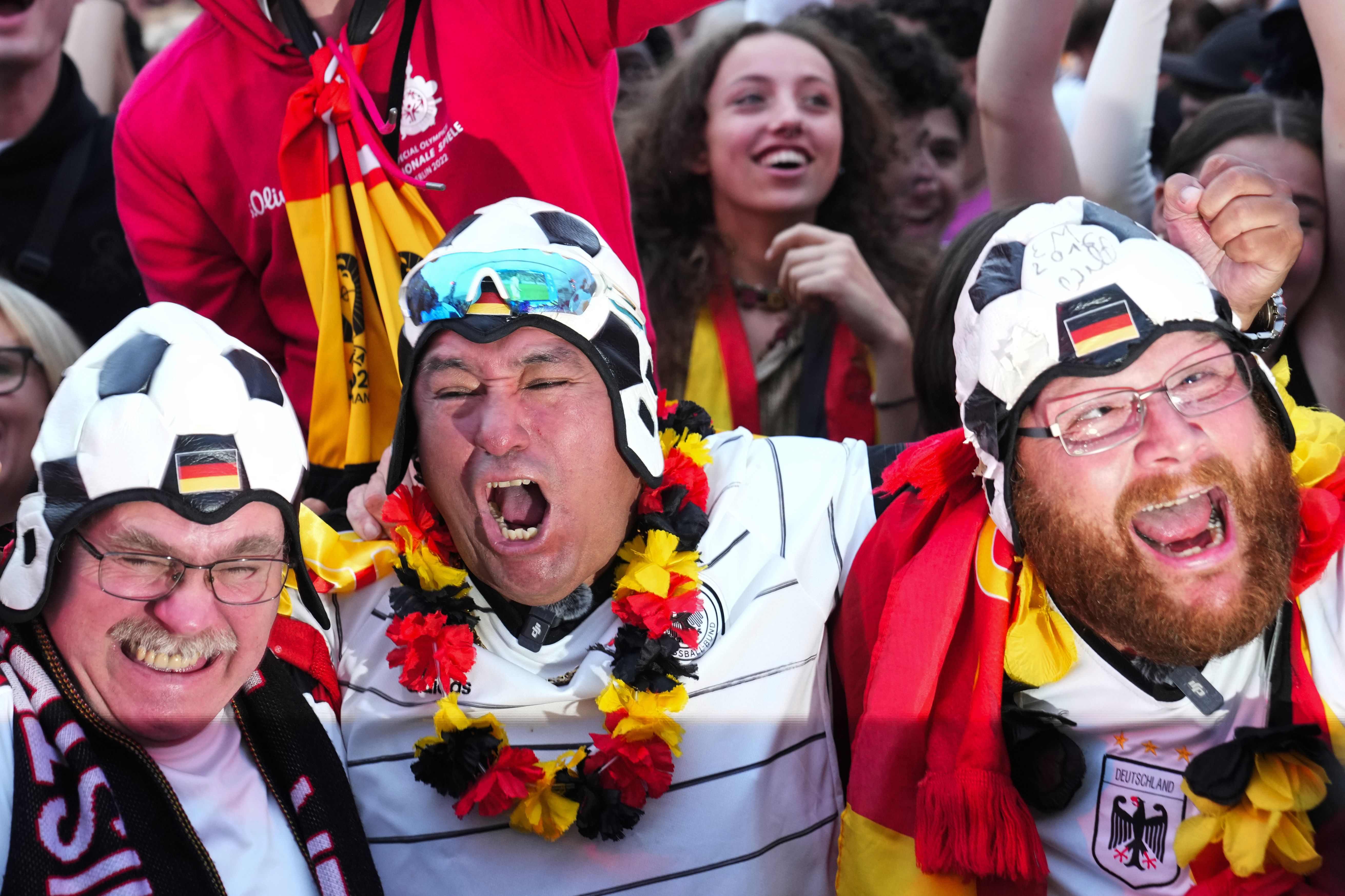 Fans cheer as they watch a Group A match between Germany and Scotland at the Euro 2024 soccer tournament in Berlin, Germany, Friday, June 14, 2024. (Photo by Ebrahim Noroozi/AP Photo)