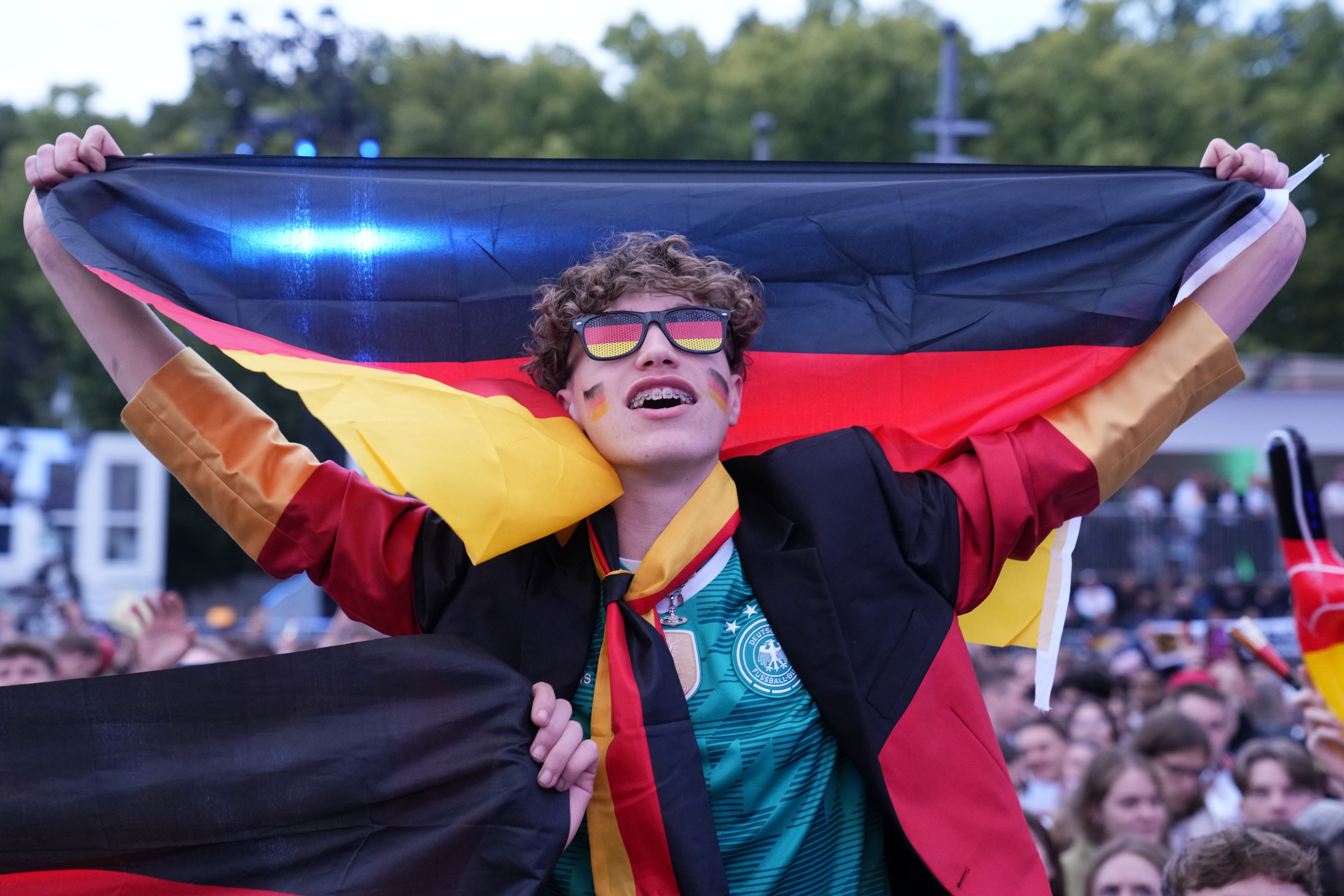 A fan cheers as he watches a Group A match between Germany and Scotland at the Euro 2024 soccer tournament in Berlin, Germany, Friday, June 14, 2024. (Photo by Ebrahim Noroozi/AP Photo)