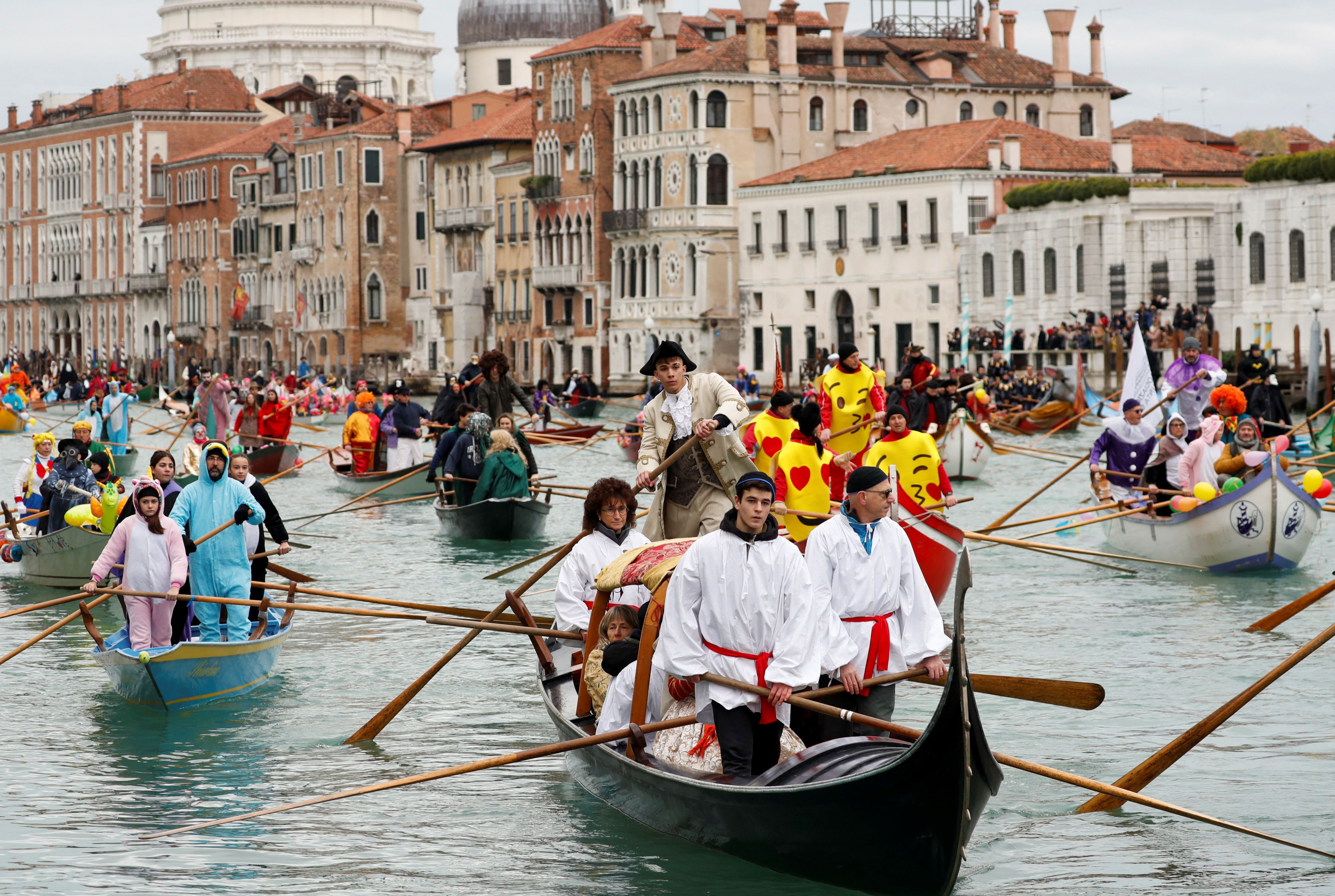 Venetians take part in the masquerade parade on the Grand Canal during the Venice carnival, in Venice, Italy on February 5, 2023. (Photo by Remo Casilli/Reuters)