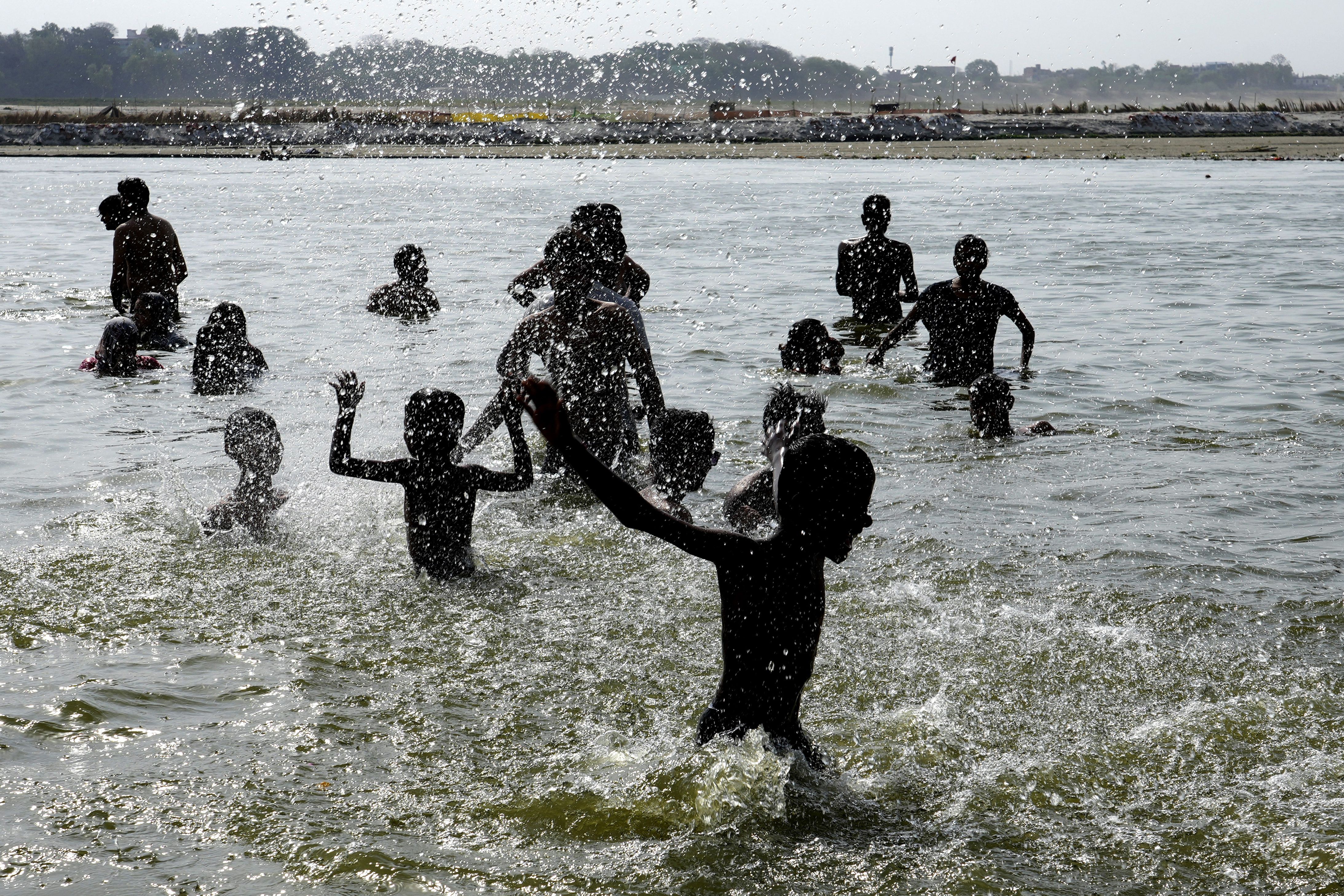 People bathe in the river Ganges to cool themselves off as northern India continues to reel under intense heat wave, Prayagraj, Uttar Pradesh state, India, Monday, June 17, 2024. (Photo by Rajesh Kumar Singh/AP Photo)